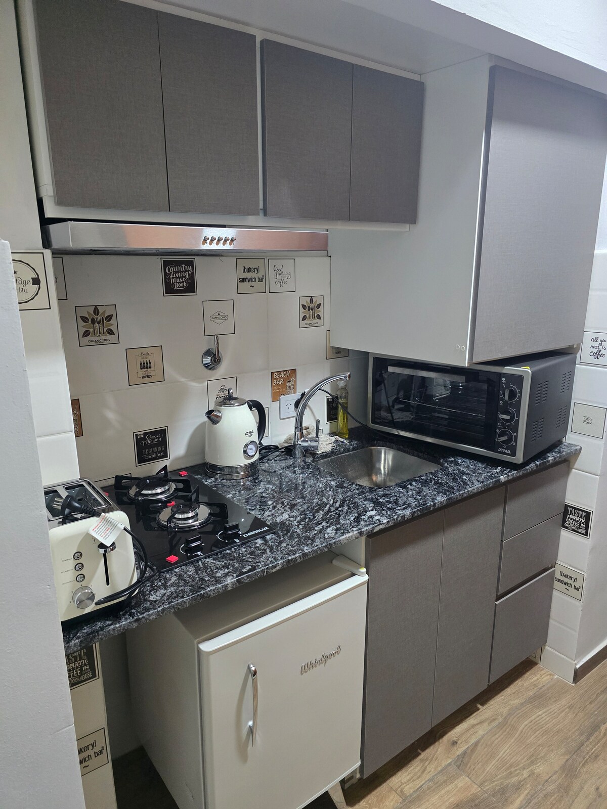 Disfrutá de la sencillez de este alojamiento tranquilo y céntrico, cerca de los centros de salud mas importantes de Neuquén a pocos minutos de los centros comerciales. instalaciones de categoría, un Monoambiente con todas las comodidades, calefacción por losa radiante, cama de dos plazas y un sofá cama , televisión de 43" con cable y servicios prepagos, wifi de muy buena velocidad y todo el equipamiento para que te sientas cómodo en tu estadía.