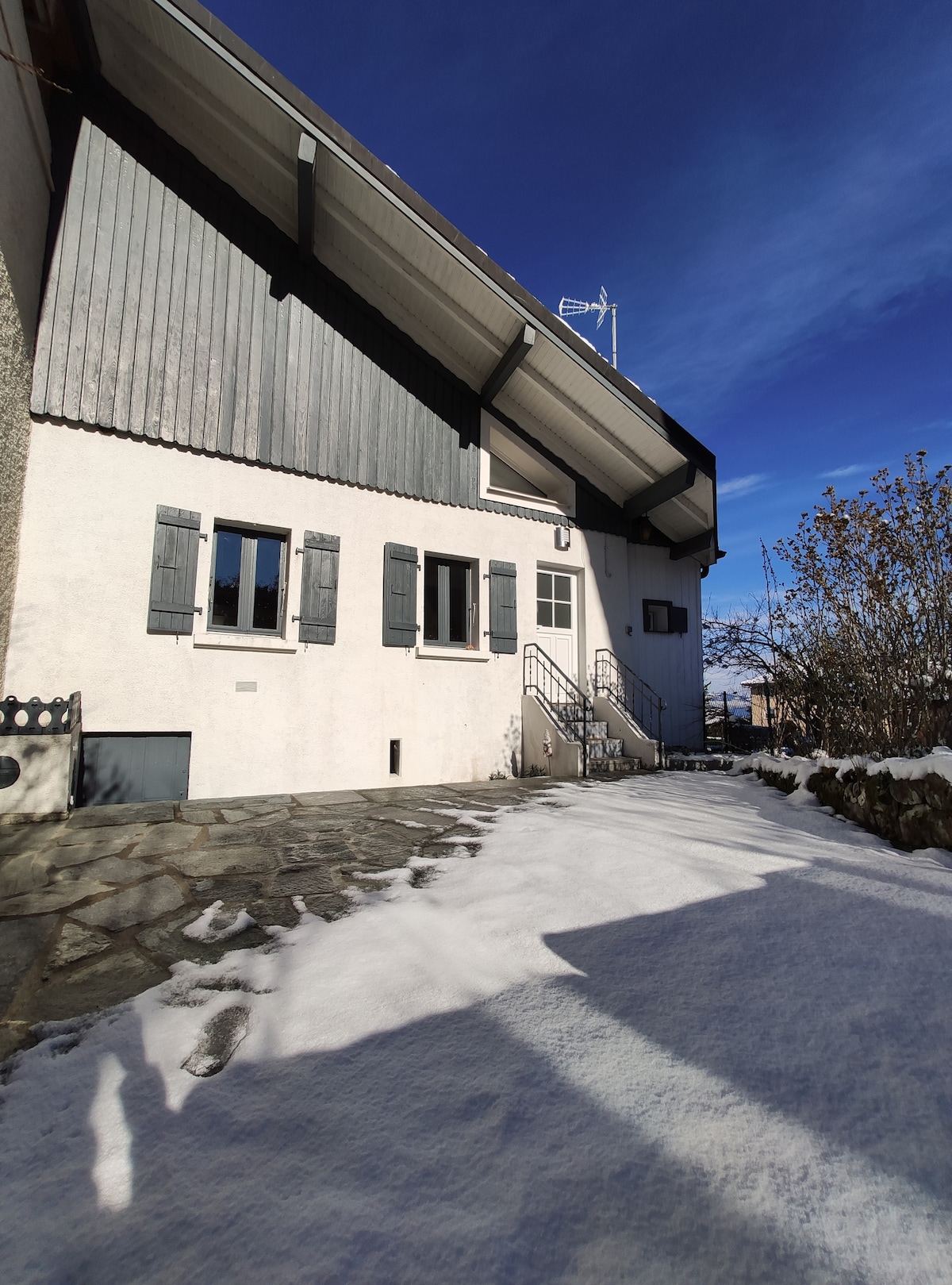 Ven y crea recuerdos en nuestra casa única, espaciosa y familiar. Situados a 8 minutos por encima de Montreux, estamos tranquilamente ubicados entre un gran campo verde y un pequeño viñedo. Despiértate con impresionantes vistas del lago Lemán y la cumbre de Grammont y toma tu café de la mañana o una copa de vino en la terraza de la azotea. :) Es fácil llegar, ya que la estación de tren de Planchamp está a solo 1 minuto a pie de la puerta principal y tenemos 1 aparcamiento gratuito. Tantas aventuras por vivir :)