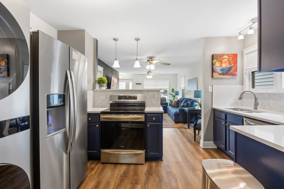 Tu familia disfrutará de esta moderna casa de 2 dormitorios y 1 baño con ubicación céntrica que se encuentra a poca distancia a pie del centro de New Albany y a 13 minutos en coche del centro de Louisville. Con senderos para caminar, pequeñas tiendas y una panadería dulce a la vuelta de la esquina, tu familia puede explorar nuestra pequeña ciudad. Situado en una calle tranquila y rodeado por la histórica Nueva Albany, puedes terminar la noche en nuestro patio cubierto y vallado.