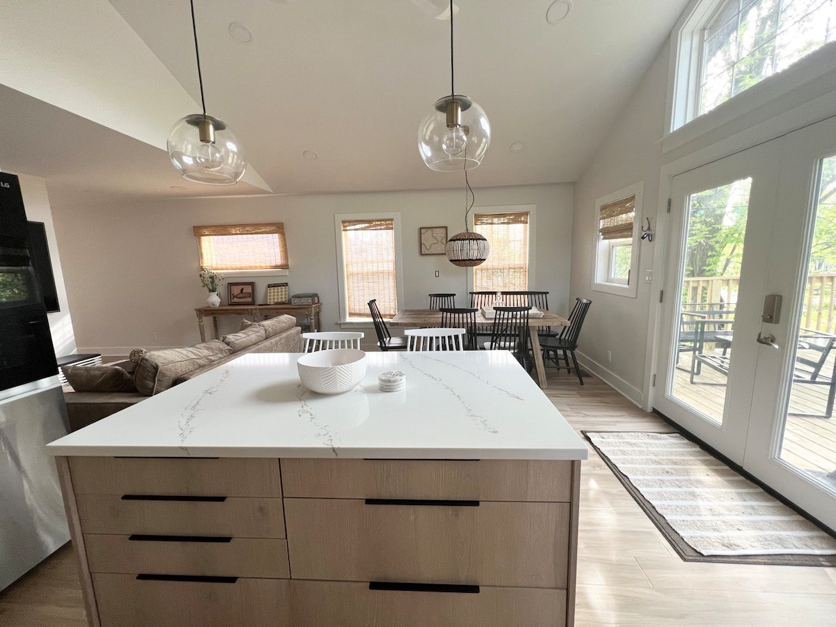 ¡Escápate a New Buffalo y relájate en nuestra casa recientemente renovada! A 10 minutos a pie encontrarás fantásticas tiendas, restaurantes y bares. Nuestra casa de 4 camas y 2,5 baños, diseñada profesionalmente, tiene capacidad para 10 personas. Ubicado en un barrio tranquilo, el gran patio trasero incluye una parrilla, chimenea y comedor al aire libre. A menos de 1 milla de la playa y de la estación de Amtrak, a 5 minutos de Union Pier, a 15 minutos de la ciudad de Michigan, a 40 minutos de South Bend y a 75 minutos de Chicago. ¡Quédate y disfruta de Harbor Country a lo grande!