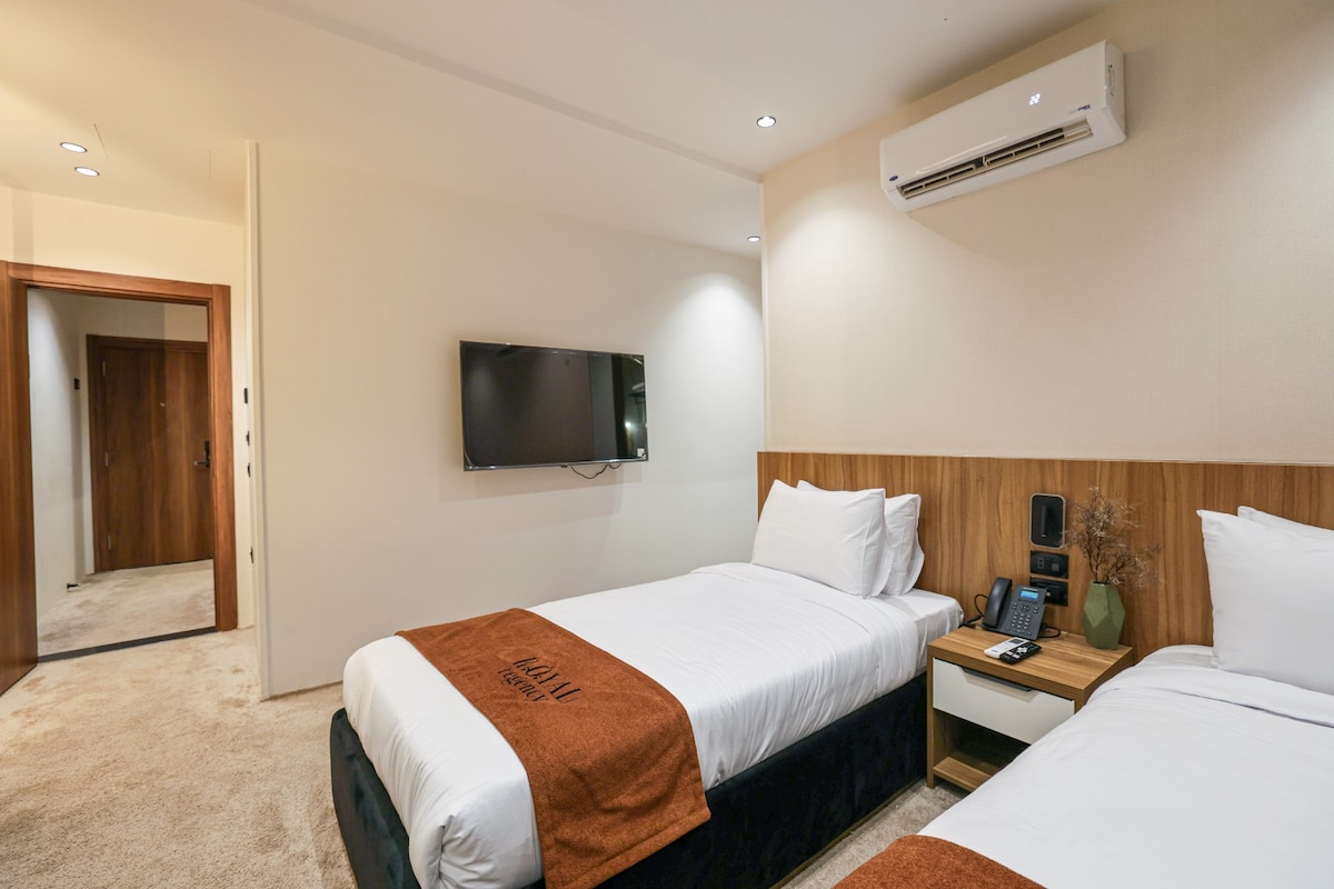 Our boutique hotel features designed rooms. Every room includes a cozy fireplace, minibar, kettle, coffee machine, and microwave. All rooms also have their own private bathroom. The hotel offers a rooftop heated swimming pool with views overlooking the golf course of kattameya Dunes compound. Guests can enjoy relaxing seating areas on the rooftop. We provide a 24-hour reception to assist guests at any time. The hotel also features unique seating areas overlooking waterfalls and fountains.