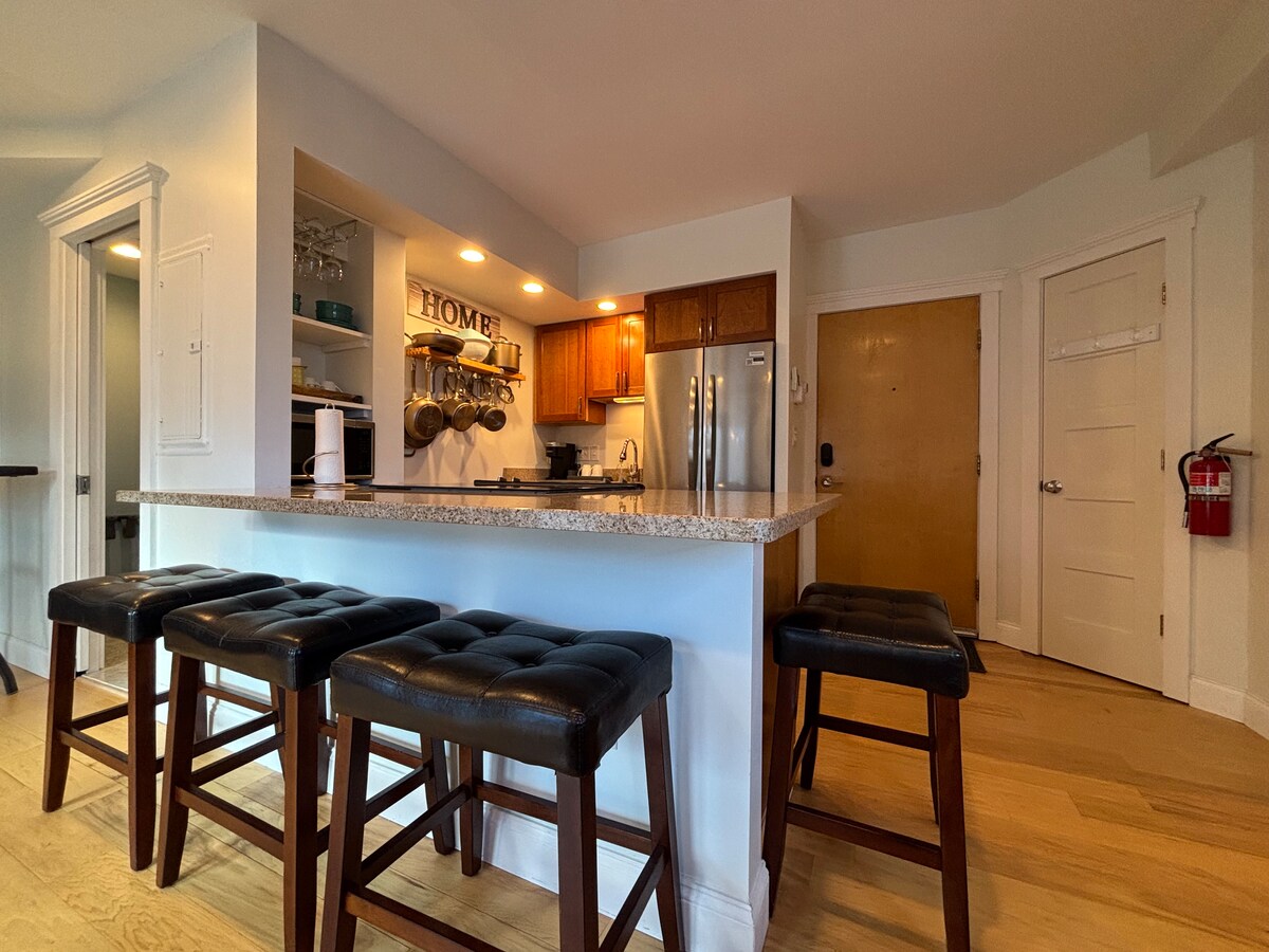 Este es un espacioso apartamento de 1000 pies cuadrados en mi casa de la infancia que ha sido renovado en la primavera de 2020 con un tema costero moderno y bien equipado con artículos vintage. Tenemos una cocina bien surtida, un acogedor comedor/sala de estar con un televisor Roku de 43 pulgadas y lavandería completa. Prueba un pastel del panadero profesional al otro lado de la calle, da un paseo por la calle hasta Crockett's Beach o ve a dar un paseo por el centro de Rockland. Es posible realizar el registro de entrada a distancia.