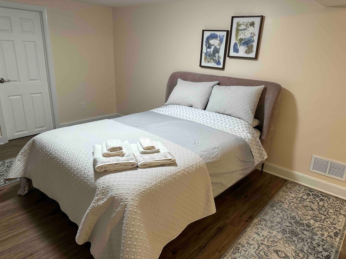 Barrio residencial muy tranquilo, muy limpio, apartamento superacogedor con dos dormitorios, sala de estar; escritorio con estación de trabajo, cocina americana (sin fogones), baño propio y servicios. A 20 minutos de Bridgeport, a 15 minutos de Yale, New Haven. Lagos a poca distancia a pie, tren Metro-North a 7 minutos, zona comercial local a 1 milla. Ruta de autobús a poca distancia a pie. ¡Gran barrio! Todos son bienvenidos. Comunidad cálida.