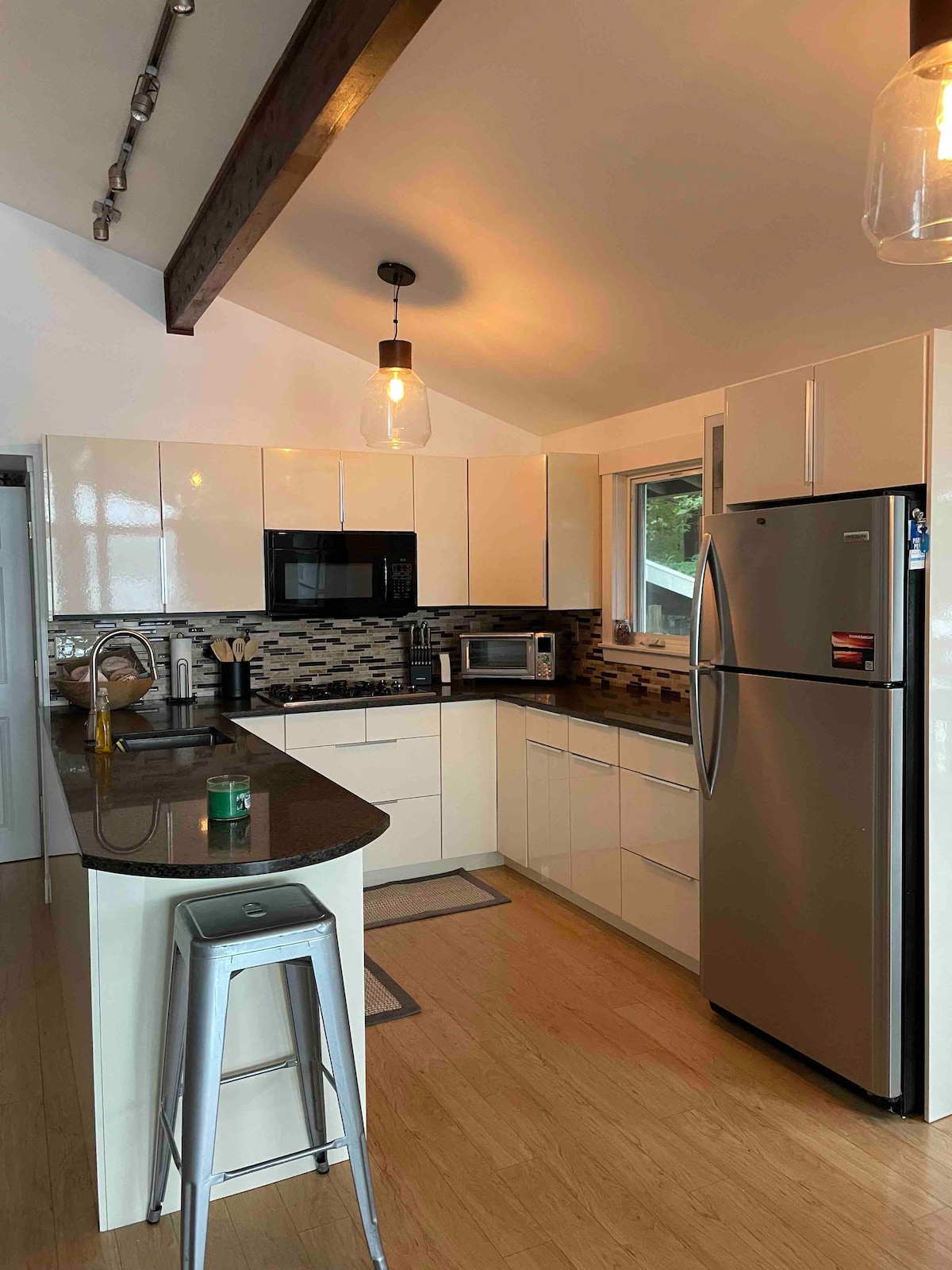 ¡Relájate en este elegante estudio! Nuestra casa está en un barrio tranquilo de casas antiguas rodeadas de bosques, pero convenientemente ubicada en el centro de la ciudad, a media milla del verde de nuestro pueblo (Milford Oval). Un corto paseo por el río te llevará a cafeterías, restaurantes, pubs con música en vivo, oficina de correos, biblioteca, tiendas y tiendas útiles como CVS. Lo que sea que te traiga... negocios, esquí, senderismo, antigüedades, una celebración familiar o un fin de semana romántico... ¡esperamos poder hospedarte!