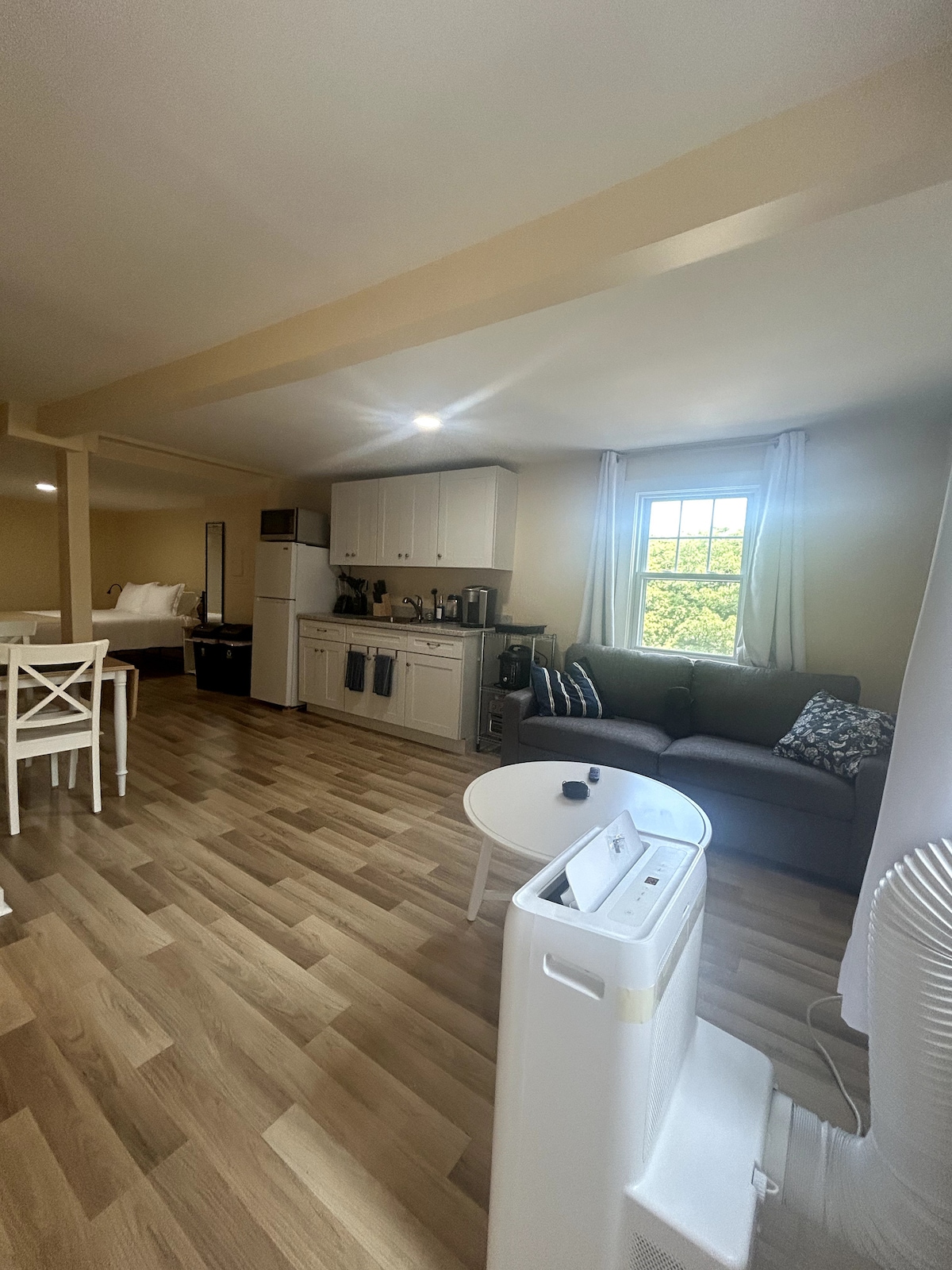 Ubicación privilegiada en la cima de la colina, entre el centro de Newport y la (primera) playa de Easton. ¡Corre por el Cliff Walk, a 3 cuadras de distancia! Este estudio privado y abierto cuenta con una cómoda cama king de espuma viscoelástica, un baño nuevo, una cocina pequeña (con microondas y refrigerador, sin horno) y un sofá grande para estirarse. Ideal para una pareja que busca escaparse a un lugar un poco más hogareño que un hotel. Tiene estacionamiento. También es adecuado para padres y niños pequeños. NOTA: En marzo de 2026, el patio delantero está lleno de barro debido a las obras, precio reducido.😊NPT ID#755