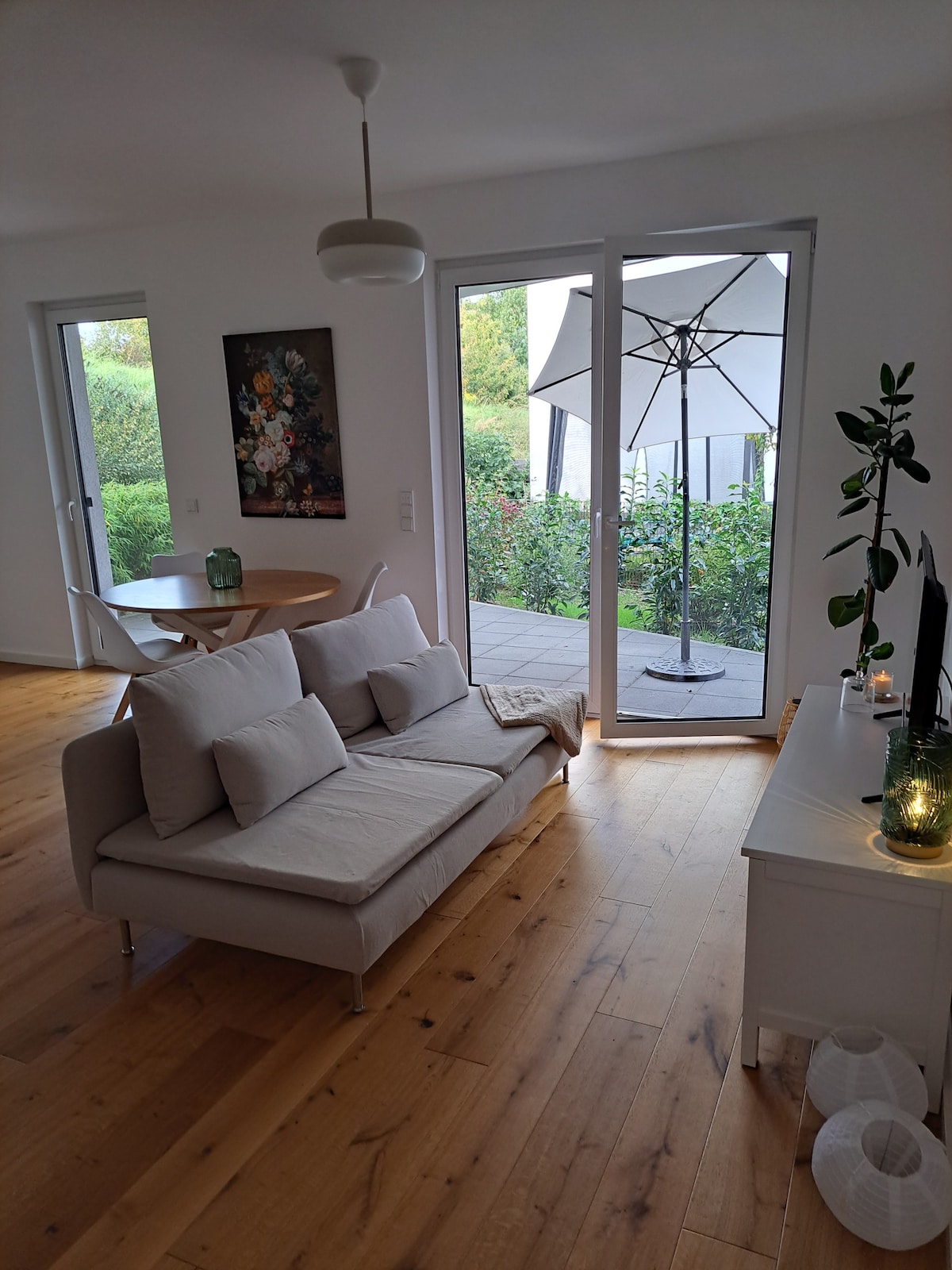 Ya sea para una visita ferial, un viaje corto o debido a una reunión de negocios en la metrópolis financiera de Frankfurt o los alrededores, haremos que tu estancia sea lo más placentera posible. El apartamento de 62 metros cuadrados tiene una entrada independiente en el lado del jardín de la casa. Consta de un dormitorio doble, una acogedora sala-comedor con una cocina moderna y totalmente equipada, barra de desayuno, una acogedora sala de estar y un escritorio. El vestíbulo de entrada conduce a un baño de estilo mediterráneo con ducha, inodoro y lavabo doble. Delante del apartamento hay una zona de estar exterior cubierta con vistas al jardín. Aquí pueden disfrutar del aire fresco o fumar un cigarrillo, que no es deseado en el apartamento. Se proporciona TV de pantalla plana, reproductor de DVD, estéreo, radio con iPod, Wi-Fi y caja fuerte. Si es necesario, se puede usar otra habitación con una superficie de 23 metros cuadrados adicionalmente. Está equipado con un sofá cama extraíble de 2 m de ancho, armario, mesa y TV wifi y se puede acceder a él a través del baño del apartamento. El departamento se encuentra en una zona residencial agradable y tranquila en Bad Vilbel. La estación de S-Bahn (tren suburbano) más cercana está a unos 8-10 minutos a pie y toma el S6 hasta el centro de Frankfurt en unos 20 minutos o hasta la feria comercial. En auto, puedes llegar a Frankfurt a través de la B3 en 15-20 minutos.