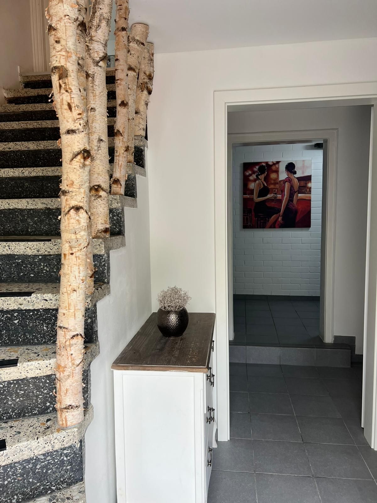 Apartamento de diseño abierto. En la planta baja del apartamento: cocina, baño, aseo separado, así como comedor y sala de estar. La primera planta del apartamento es un ático convertido, aquí pueden dormir hasta 6 personas en total. ¡Un colchón en el suelo (1,40 m de ancho) y 4 camas individuales en una habitación abierta! (¡El acceso al colchón es estrecho y profundo!) Dado que el apartamento se encuentra 2 plantas por encima de un restaurante, es posible que de vez en cuando la música llegue al apartamento. Esto suele ser solo los fines de semana.