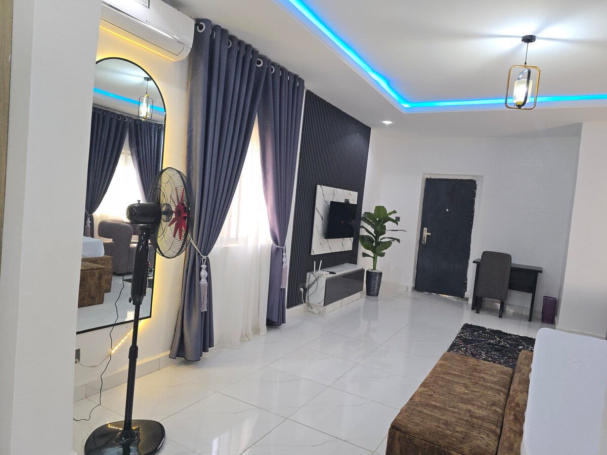 Un apartamento exquisito y amueblado con buen gusto, adecuado para tu estancia corta y larga, estratégicamente ubicado en la mejor finca de la capital de Nigeria: Abuja, a lo largo de la carretera del aeropuerto, una importante arteria que conecta la finca con el corazón de la ciudad y el Aeropuerto Internacional Nnamdi Azikiwe. Esta ubicación privilegiada garantiza que los residentes nunca estén demasiado lejos de los servicios esenciales, los distritos comerciales y los centros de entretenimiento.