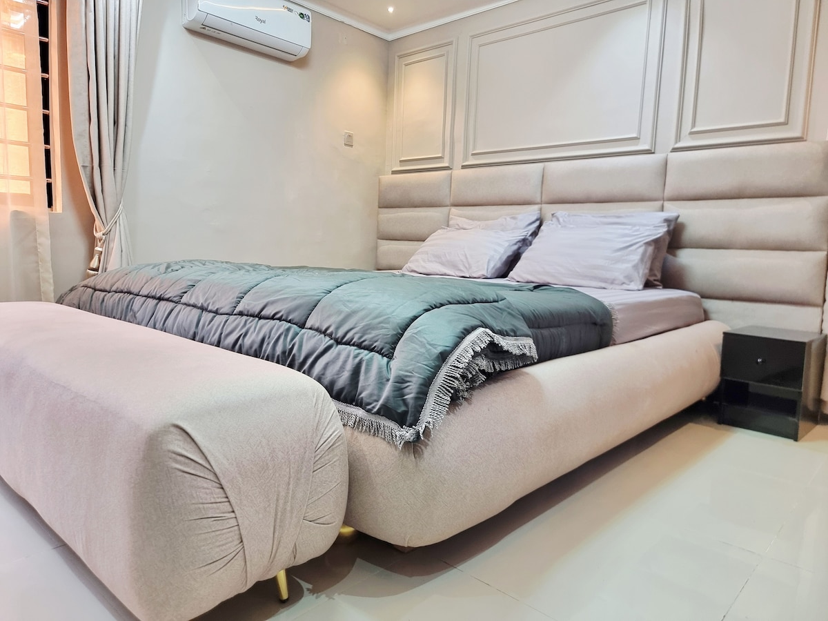 This Luxurious 2‑Bed Retreat with Bamboo themed Garden Oasis is the perfect blend of elegance, comfort and tranquillity in a beautifully appointed 2‑bedroom hideaway. Designed for discerning guests, this home offers a luxurious kitchen, a spacious bamboo‑themed garden, and the peace of mind that comes with staying in a secure and serene gated community. Highlights Elegant Master Ensuite Bedroom – High end Kitchen – Private Garden – Safe & Serene Location about 8 miles from Int'l airport