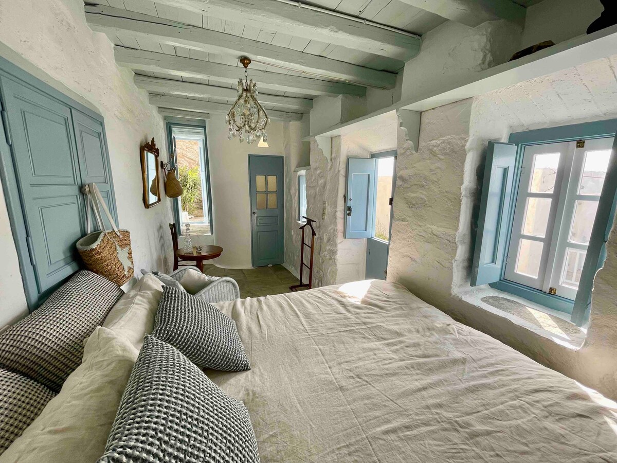 Mi casa es una pequeña casa antigua de dos niveles con arquitectura tradicional de las Cícladas renovada durante 2019, encajada en los callejones de la antigua y bien conservada capital de la isla de Serifos, llamada Chora. Debido a su topografía y a la compleja red de callejones estrechos, no se permiten vehículos, solo mulas. Esto lo convierte en un lugar ideal para los huéspedes que aprecian la simplicidad y la autenticidad, combinadas con la tranquilidad y una espléndida vista panorámica al mar Egeo, lejos del ruidoso puerto de Livadi.