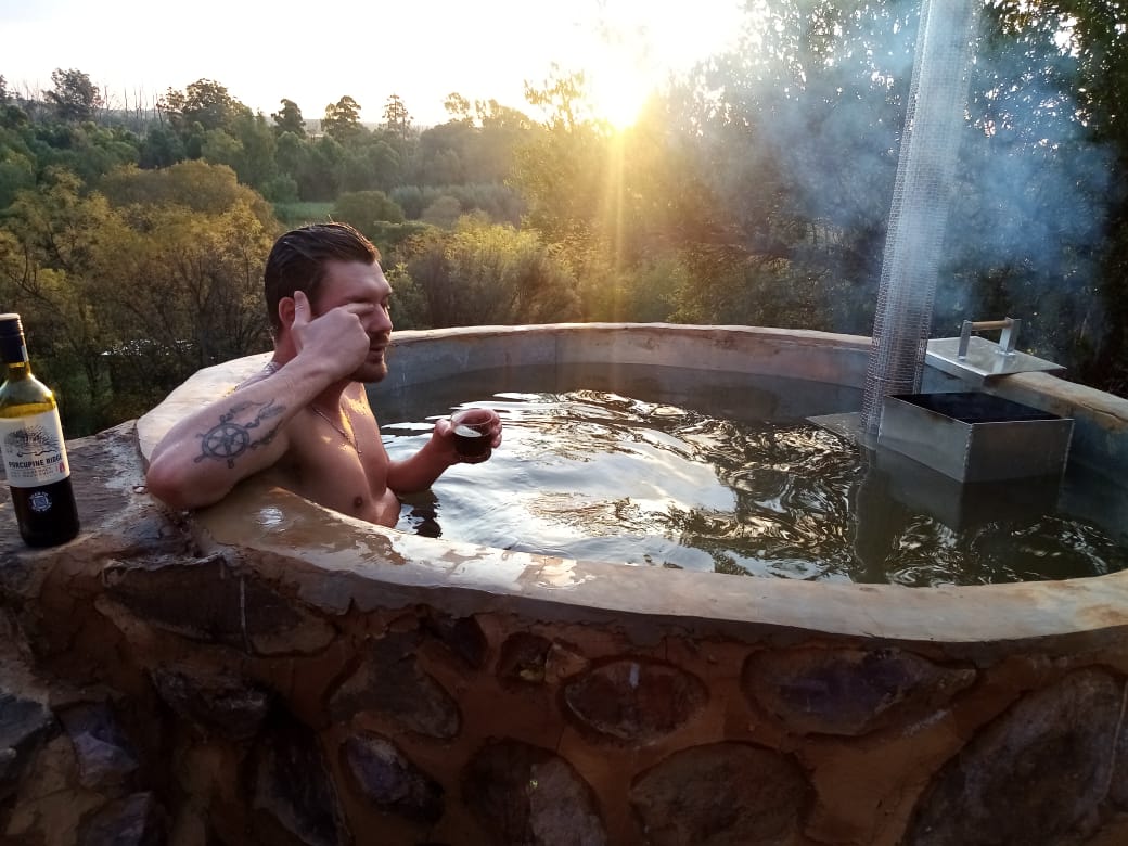 Una experiencia de campamento africano rodeada de excelentes paisajes y abundante avifauna. ¿Necesitas un descanso de la Rat Race? Relájate en el lago/piscina. Disfruta de una cena romántica en tu fogata privada, disfrutando de las increíbles puestas de sol y los sonidos de la naturaleza y recargando tu batería. Las tiendas de campaña están fuera de la red. Ofrecemos lo siguiente y más que se puede reservar con el trabajador de la granja Derrick 1: Paseo por el monte y desayuno: R350,00 por persona 2: Jacuzzi: R250.00 por pareja por hora 3: Bolsa de hielo R35.00 4: Leña R35,00