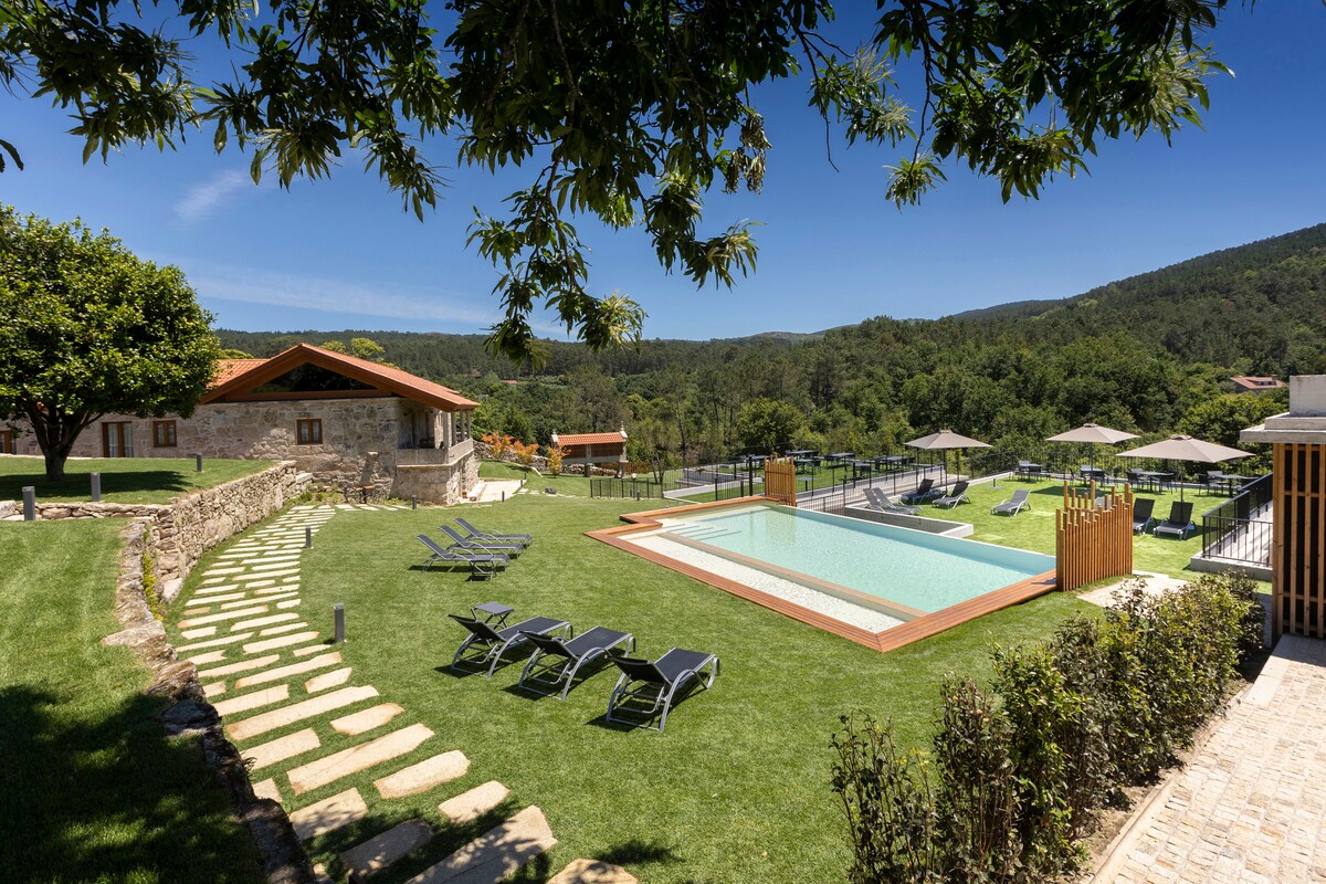 Casa rural boutique con 150 años de historia, muy bien situada para visitar toda Galicia. La casa se encuentra en un valle a 15 km. de Santiago, a 20’ de las playas y a menos de 1 hora de varios parques naturales. La localidad de Bertamiráns donde encontraréis todos los servicios está a 3km. La casa es ideal para familias ya que tiene 7 dormitorios, 5 baños y varias zonas de estar. Amplios exteriores con piscina, patios, barbacoa, porches y jardines. Zona de de juegos y aparcamiento privado.