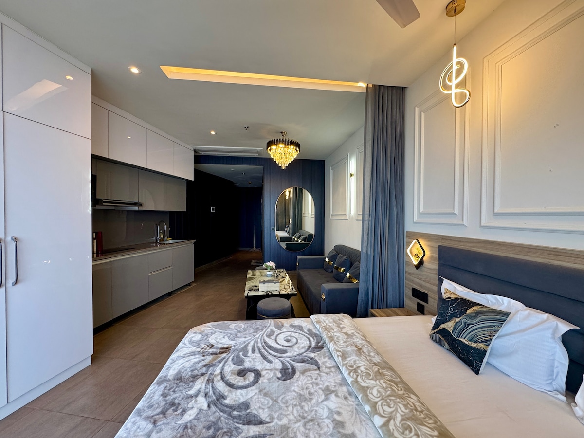 Flota sobre la ciudad en este tranquilo santuario de gran altura con vistas panorámicas del río Yamuna y el horizonte. Ya sea que estés en una escapada romántica, un viaje de trabajo o unas vacaciones, Cloud 33 está diseñado para la comodidad y el estilo. Ubicación ✔ privilegiada: a solo 100 metros del metro para un fácil acceso a la ciudad Vistas ✔ panorámicas: balcón privado con río + puestas de sol en el horizonte ✔ Ideal para parejas y profesionales: acogedor, moderno y totalmente equipado