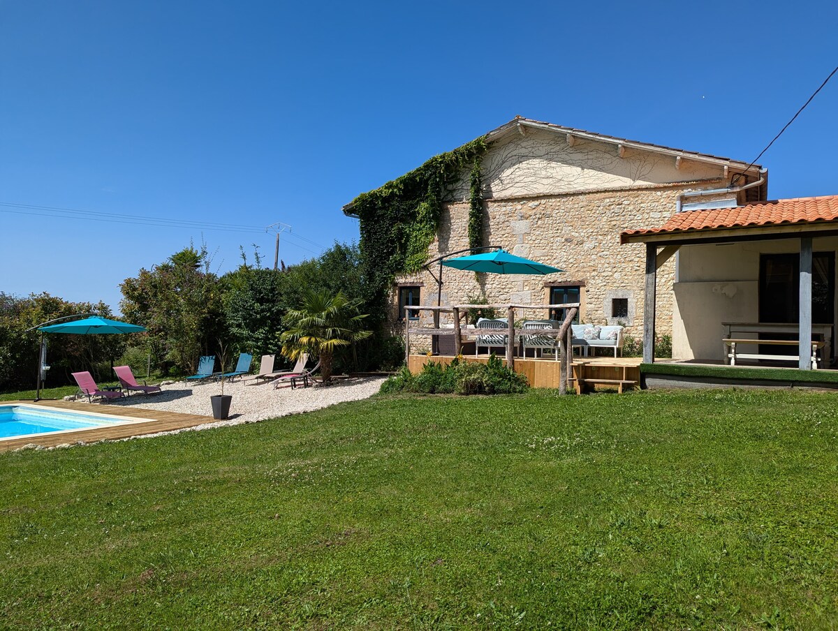 Casa rural con piscina en la frontera entre Charente y Dordoña