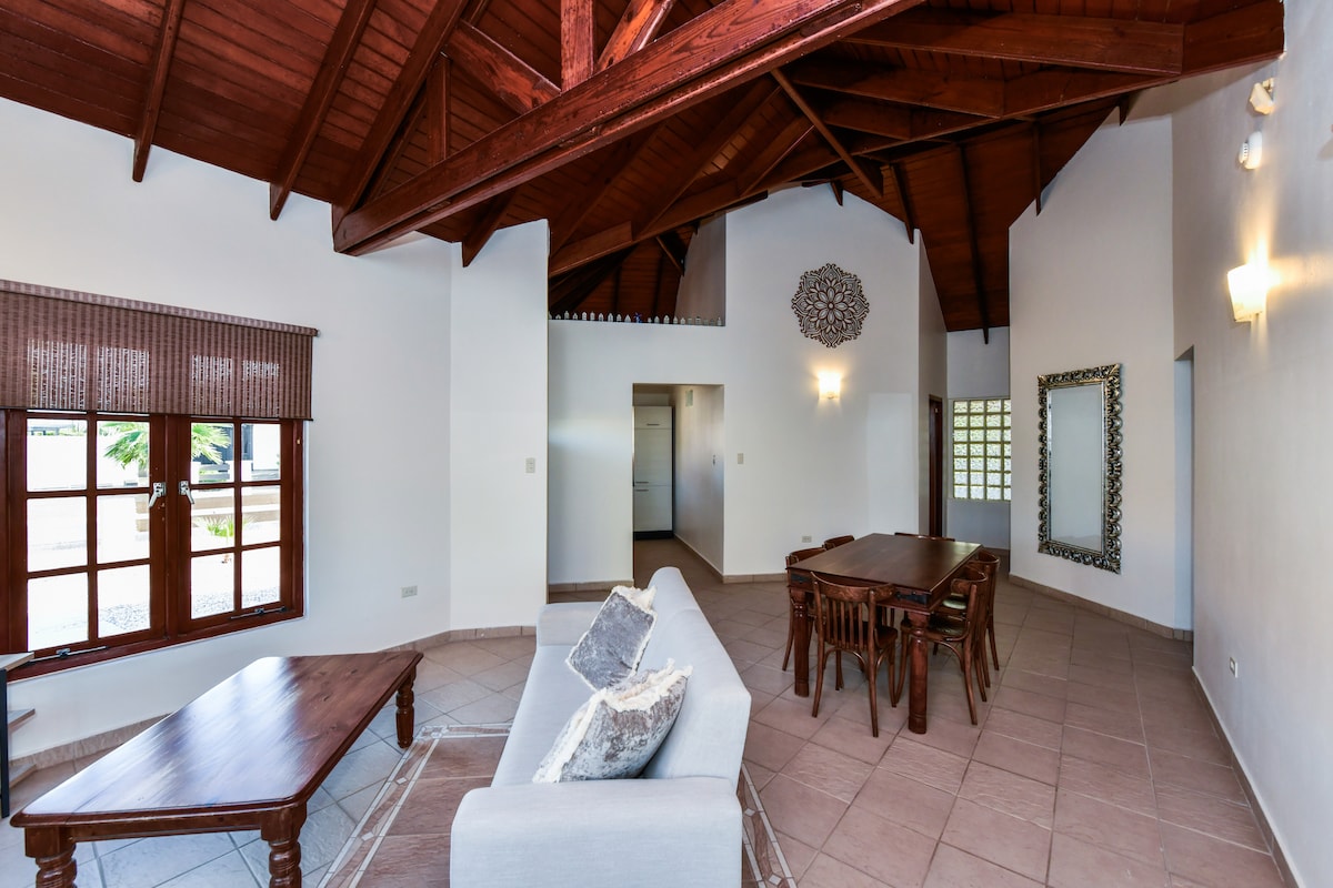 IMPRESIONANTE CASA ADOSADA DE LUJO MODERNA A ESTRENAR, ubicada en LeVent Beach Resort. El espacio tiene 2 dormitorios, con piscina privada y un patio. Una muestra de privacidad dentro de un centro vacacional con acceso a todos los servicios, como seguridad las 24 horas, gimnasio, piscina y mucho más. A solo unos pasos de Eagle Beach, considerada la mejor playa de Aruba. Relájate y disfruta de 2 dormitorios, 2,5 baños, una espaciosa sala de estar de 2 pisos (~1,500 pies cuadrados) con tu propia terraza en la azotea. Tiene capacidad para un máximo de 6 huéspedes.