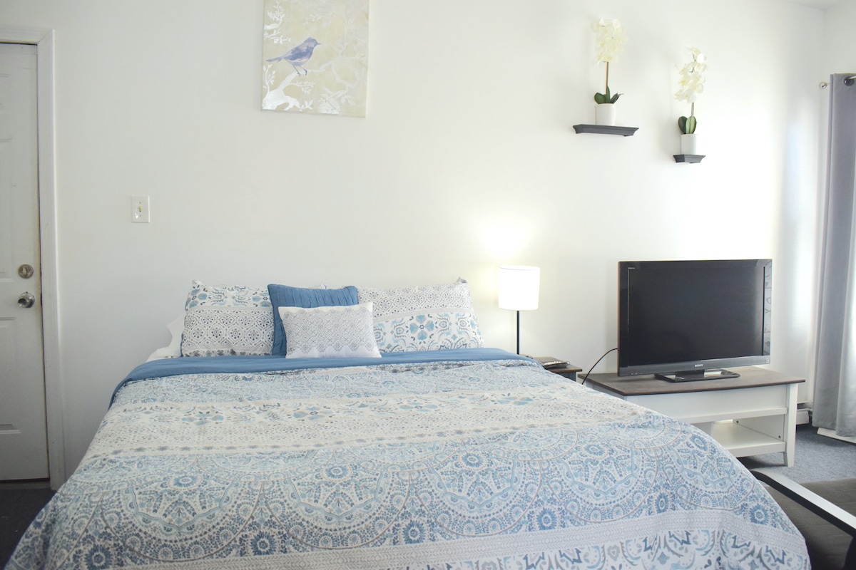 Las puestas de sol de Boston Skyline son hermosas durante el verano, a solo un minuto de tu Airbnb. Este acogedor estudio, con entrada privada y baño, incluye estacionamiento GRATUITO fuera de la calle, acceso a Internet de alta velocidad, cómoda y acogedora cama tamaño queen con sábanas premium, nespresso, nevera, con bocadillos de cortesía y SIN tarifa de limpieza. Echa un vistazo a las playas y restaurantes. Relájate viendo tu programa favorito en el televisor inteligente de alta definición o ponte al día con el trabajo en el espacioso escritorio.