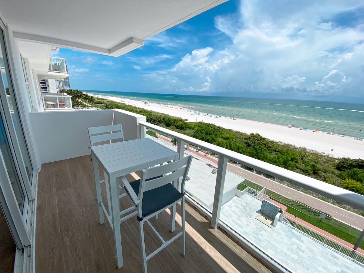 OCEANVIEW with terrace , One bedroon apt 2 full bath sleep 6 Beautifull apartment in an oceanfront building located in the heart of Miami Beach , 10 blocks north of famous Fontainebleau Hotel Building has beach access , gym , tennis court , Restaurant and Tiki Bar Close to the Downtown Miami and Port of Miami , 15 minutes from Miami airport and 35 from FLL airport Free Valet parking included (It's a 65 dollars value) Free Miami Beach Trolley transportation on Collins ave