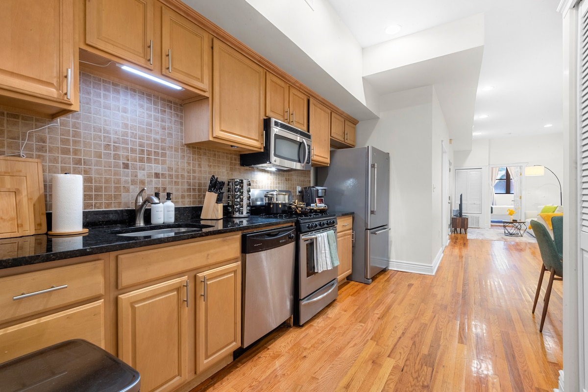 Hoboken on Bloom es el Garden Apartment de una piedra rojiza clásica de 1869 de ancho completo (no es un típico Hoboken "delgado"), un lugar relajante para volver a casa después de un día en Nueva York. Su ubicación céntrica permite múltiples rutas convenientes a Nueva York y un fácil acceso a Steven 's. Este departamento recién renovado cuenta con todos los servicios de una vivienda y tiene capacidad para hasta 3 adultos cómodamente o una familia de 4. Acceso a lavadora y secadora. Espacio de trabajo exclusivo. Los huéspedes tienen acceso completo a los patios delanteros y traseros.