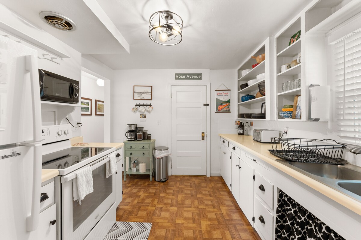 The Village Bungalow es un espacioso apartamento de un dormitorio de un segundo piso con vistas al mar y al pueblo. La casa es abierta y luminosa con muchas ventanas grandes. El dormitorio principal tiene una cama tamaño queen y una cama de tamaño completo. La cama de tamaño completo se encuentra en un rincón al lado del dormitorio principal, con puertas de granero para cerrar el espacio. La tercera cama es una reina, está en un rincón de la sala de estar, también tiene puertas de granero para la privacidad. La casa está cerca de tiendas, tiendas de comestibles y restaurantes.