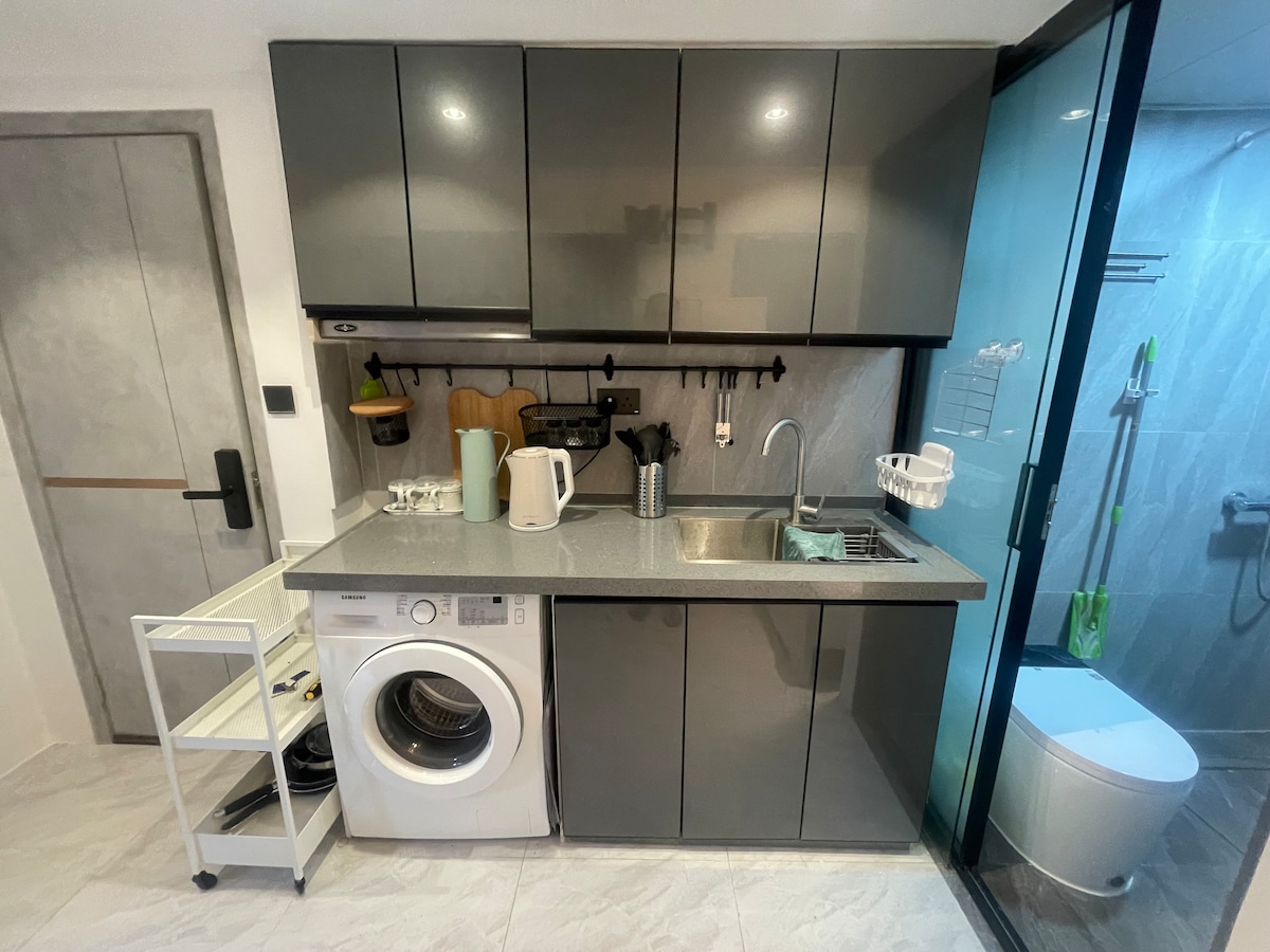 小区配套:幼儿园,小学,快递驿站,大型超市,便利店,菜市场,巴士站,茶餐厅,健身房,洗衣店,万宁,理发店,中西医牙医诊所,球场一应俱全。 房子面积550呎(55平方米),刚进行维修,2室1厅1厨1卫,可住4人。冬暖夏凉,家俱电器齐全,拎包入住。房内提供: 1)1000MB高速wifi / 光纤 2)4张独立书桌,三个衣柜,客厅有两张沙发床,两个卧室分别有一张上(单人)下(雙人)床,都备有床垫。 3)备有冰箱,洗衣机,空调,炉具。 直租免佣,欢迎看房,可即场提供业主证明。