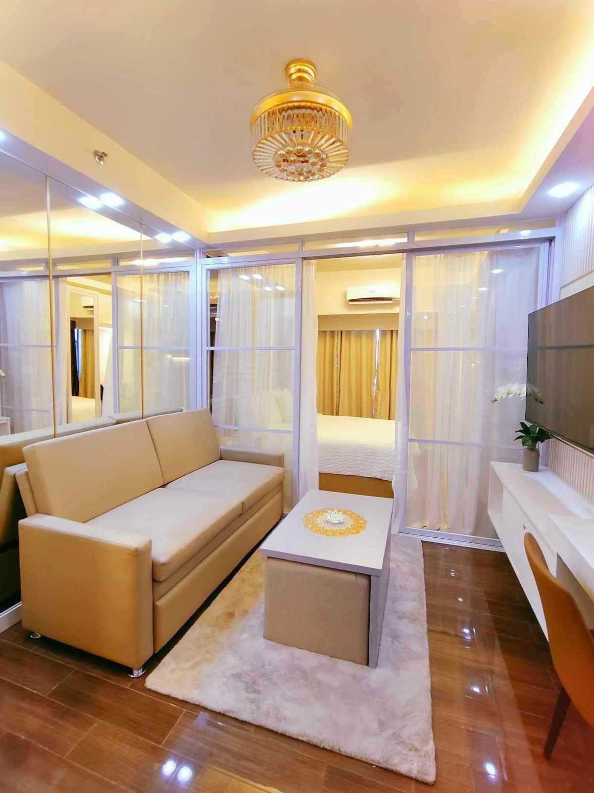 ¡Bienvenido a nuestro espacioso Tahanan de inspiración mediterránea y contemporánea, un estudio de 25 metros cuadrados en Mandaluyong, a pocos pasos de Rockwell y Powerplant Mall! Hemos diseñado nuestro espacio para proporcionar una estancia cómoda mientras capturas impresionantes vistas del atardecer, así como vistas de Mandaluyong y Makati desde nuestro balcón. Ya sea que estés de visita por trabajo, placer o una combinación de ambos, nuestro Airbnb bien equipado es la base perfecta para explorar las vibrantes ciudades de Mandaluyong y Makati.