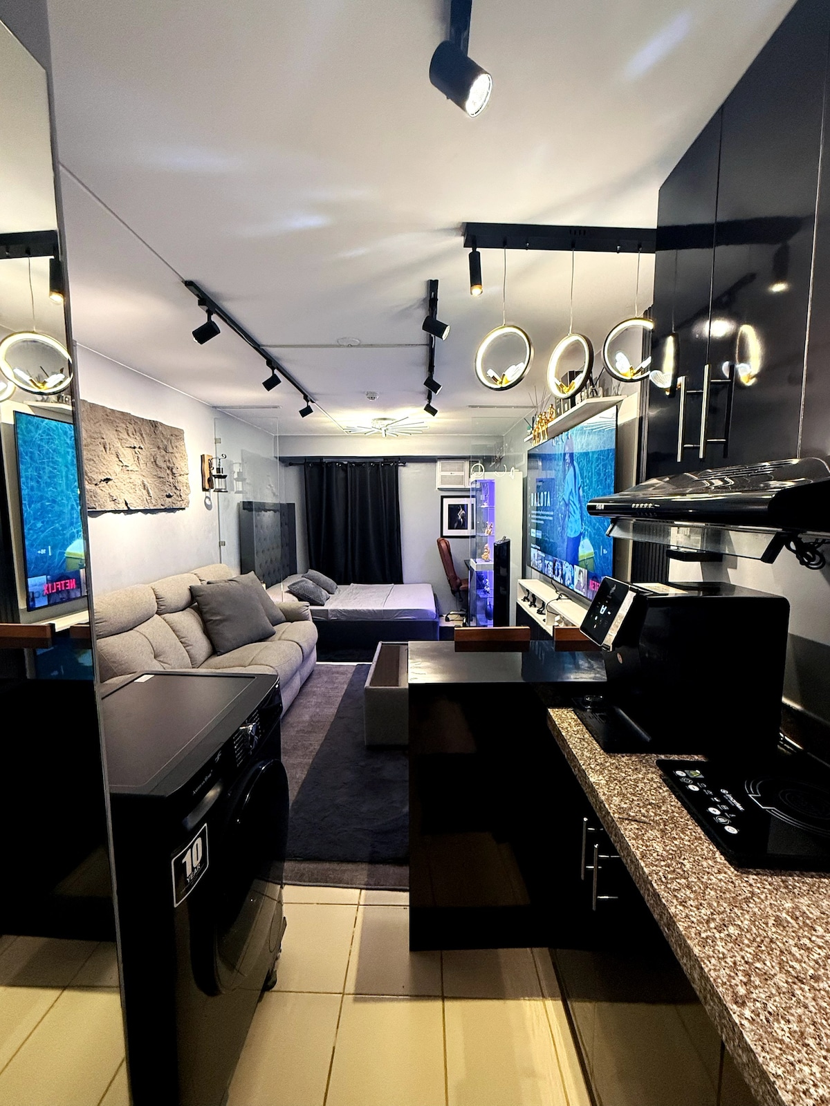 acogedoras vacaciones de lujo en casa en MANILA unidad totalmente amueblada totalmente interior. * TELEVISOR INTELIGENTE DE 75 PULGADAS DE ANCHO * SOFÁ LAZY BOY *Mesa auxiliar de cama con cargador inalámbrico. * Buena conexión wifi. * Aire acondicionado Condura superfrío (preparado para wifi) * Refrigerador de vidrio Condura de 10 cubos * Con purificador automático de agua zen-sei frío y caliente. * Con ducha caliente. * con cerradura inteligente de la puerta * con espejo de pared de tamaño humano (cocina/baño) * Utensilios completos/cocina. * Con kit de aseo/kit de cortesía. cerca de: Divisoria. famoso ugbo Línea LRT. SM San Lázaro. centro comercial deca