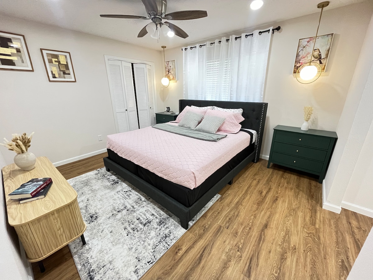 Disfruta de la comodidad inspirada en Tulum en el corazón del histórico Acres Home. Este espacio cuidadosamente diseñado combina tonos terrosos, texturas naturales y detalles boho para crear un refugio tranquilo y elegante. Disfruta de una comodidad acogedora y de calidad hotelera en un barrio tranquilo a solo 20 minutos de las principales atracciones de Houston, el centro de la ciudad, la galería, etc. Perfecto para una escapada relajante, vacaciones o viaje de negocios con un toque tropical.