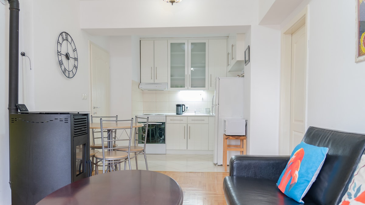 Despiértate con la impresionante vista de la iglesia de Santa Sofía del siglo XI, justo en el corazón del casco antiguo de Ohrid. Este elegante apartamento totalmente equipado combina encanto histórico con comodidad moderna, ideal para viajeros que buscan cultura, tranquilidad y estilo a solo unos pasos del lago.
