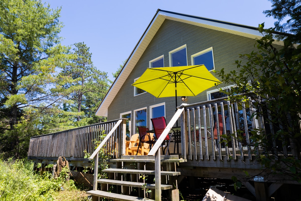 Bienvenido a tu paraíso frente al lago ubicado en el corazón de la región rural de French River. A solo 3,5 horas de Toronto, a menos de una hora de Sudbury y a pocos minutos de todos los servicios para tu comodidad. Pesca y senderos para quads en la puerta trasera. Esta preciosa casa de campo privada de 3 dormitorios incluye una mesa de billar, hockey de aire, bar, televisores de 70" y 50" con transmisión, gran patio amueblado con cenador y chimenea de propano, barbacoa, kayak, tablas de remo y una chimenea de leña más cerca del precioso lago.