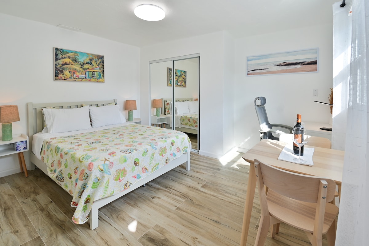 Precioso dormitorio privado recientemente renovado con baño privado. Este estudio del primer piso tiene actualizaciones modernas con muebles nuevos, cómodo colchón, almohadas mullidas y sábanas de lujo. Refrigerador pequeño, microondas y Keurig en el estudio para los huéspedes. A POCAS CUADRAS de la mejor playa donde las puestas de sol son divinas en Vanderbilt Beach. A poca distancia a pie del Ritz Carlton Naples Beach Resort con el mejor comedor frente al mar. ¡Disfruta de actividades en la playa como bombardeos, SUP, pesca, kayak y mucho más!