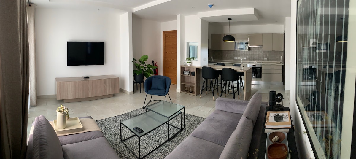 In the heart of Accra, our luxurious 2-bedroom apartment offers the perfect blend of comfort, style, and convenience. Two spacious bedrooms, sleek modern bathrooms with all the essentials and a living area perfect with a comfortable sofa, 60" TV, Wi-Fi & Netflix The kitchen is equipped with modern appliances and cookware. Our apartment is nestled in a secure, central location of Adabraka Accra, within walking distance to vibrant markets, delicious local restaurants, and historic landmarks.