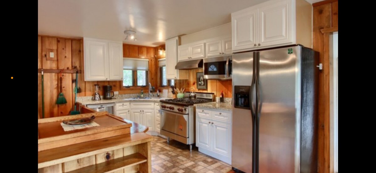 A 5 minutos de la entrada sur de Yosemite, nuestra acogedora cabina de 2 dormitorios y 2 baños recién remodelada es moderna con un ambiente rústico. Es limpio, espacioso y luminoso con techos abovedados y ventanas altas que ofrecen vistas increíbles. Los nuevos electrodomésticos de última generación en esta cocina completamente equipada hacen que cocinar una comida gourmet sea muy fácil o aproveche las estrellas mientras asa a la parrilla en la cubierta trasera. Nuestra casa tiene capacidad para 4 personas cómodamente, perfecto para familias pequeñas, viajes de negocios o una romántica Southgate-Getaway!