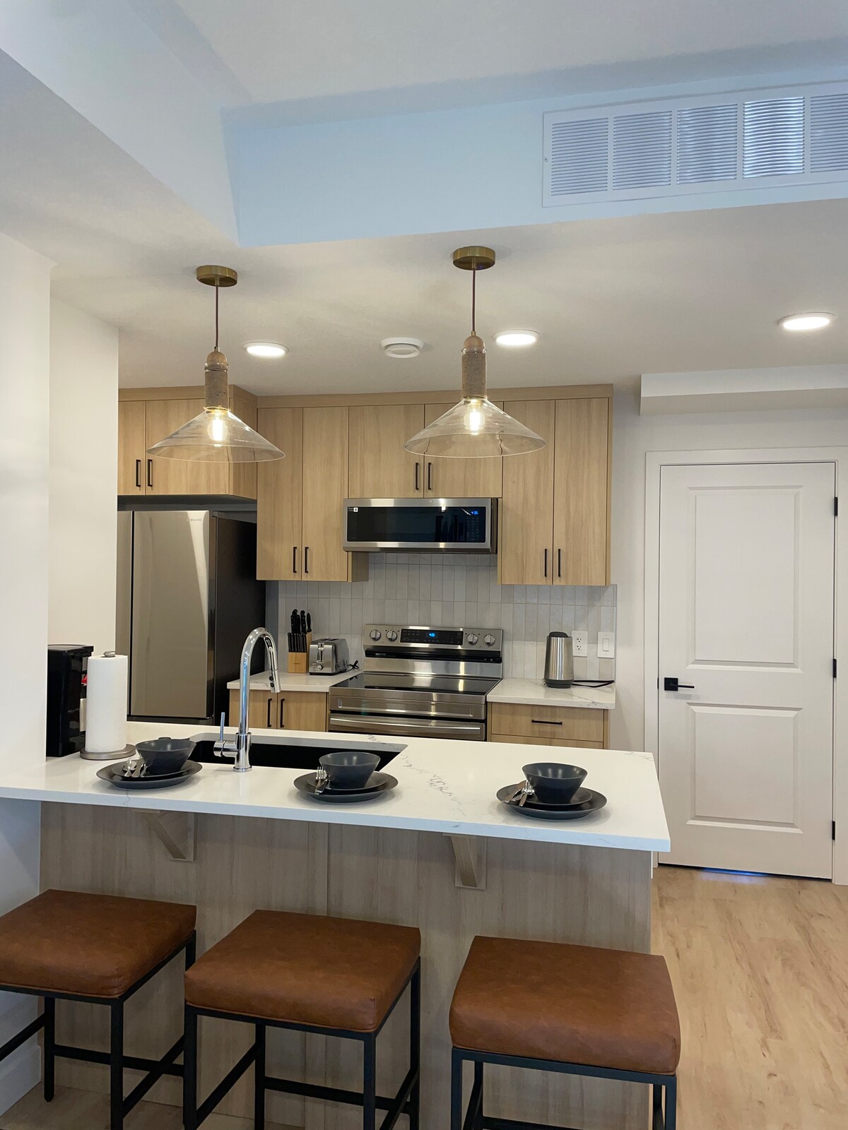 Ten en cuenta que se trata de una unidad solo para adultos. Apartamento de lujo de 2 dormitorios recién terminado y organizado profesionalmente en Windermere. Tiene capacidad para 7 huéspedes. Estacionamiento subterráneo con calefacción; a minutos del complejo comercial y de entretenimiento The Currents. ★ Limpieza y gestión profesional. ★ Estacionamiento subterráneo con calefacción. ★ A pocos minutos de tiendas, restaurantes y entretenimiento ★ Fácil acceso al aeropuerto y a las carreteras arteriales. ★ Cocina totalmente abastecida. ★ Oficina de buen tamaño que proporciona flexibilidad adicional