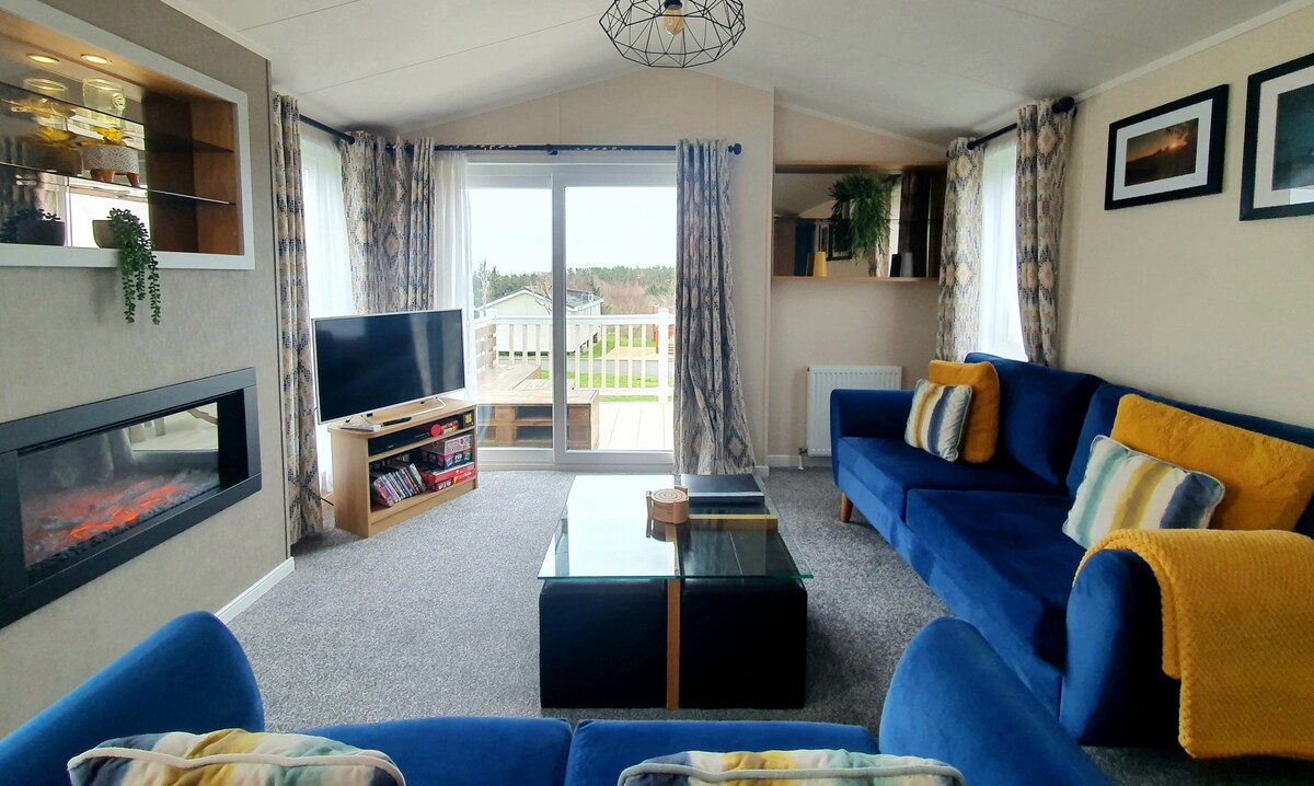 Bienvenido a View Point Lodge, disfruta de los tranquilos alrededores mientras contemplas unas vistas impresionantes de la campiña de Northumberland. Un moderno y nuevo albergue con una sala de estar de planta abierta y cocina completa, TV inteligente y wifi gratuito. Zona de estar exterior con vistas a las colinas de Simonside, aparcamiento gratuito en el lugar. Parque infantil y pistas de tenis en el lugar. También hay un bar ubicado en el club de golf en el sitio que también sirve comida, junto con una tienda de comestibles.