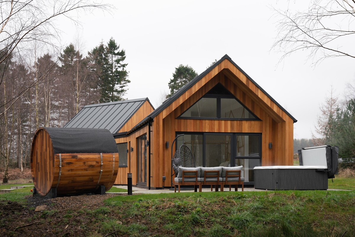 Cabaña de lujo de madera con jacuzzi privado y sauna