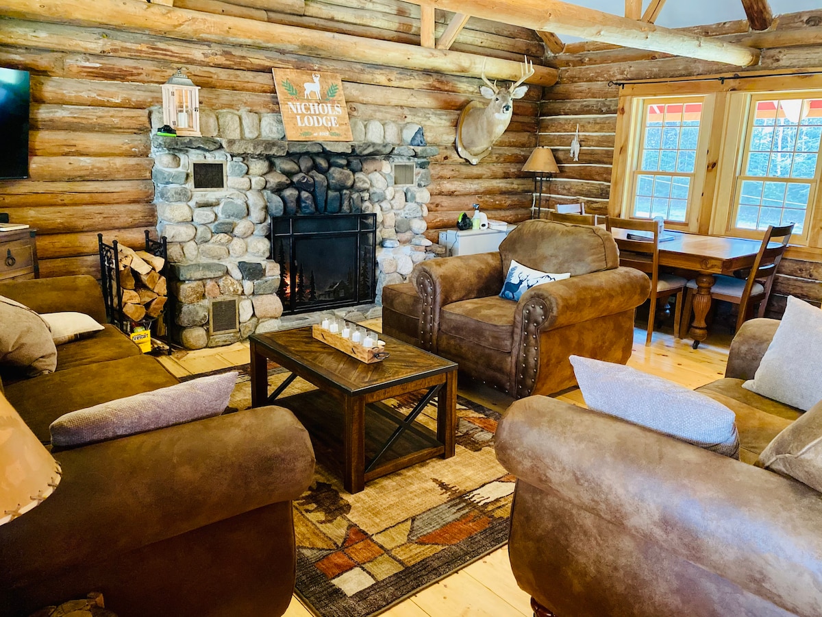 ¡Bienvenido a nuestra acogedora cabaña de troncos con vistas a la montaña! Este chalet tiene grandes ventanales con vistas a las hermosas montañas y cuenta con 2 dormitorios, un loft con un futón, 2 baños completos, cocina recién renovada, muebles de alta gama, electrodomésticos, TV inteligente Roku, wifi, terraza envolvente y porche cerrado. A menos de 1 minuto del pueblo de Santa, acceso a senderos de motos de nieve desde la casa, cerca de estaciones de esquí populares y muchas rutas de senderismo, incluidos los 4000 pies de NH. El lugar perfecto para relajarse y escapar.