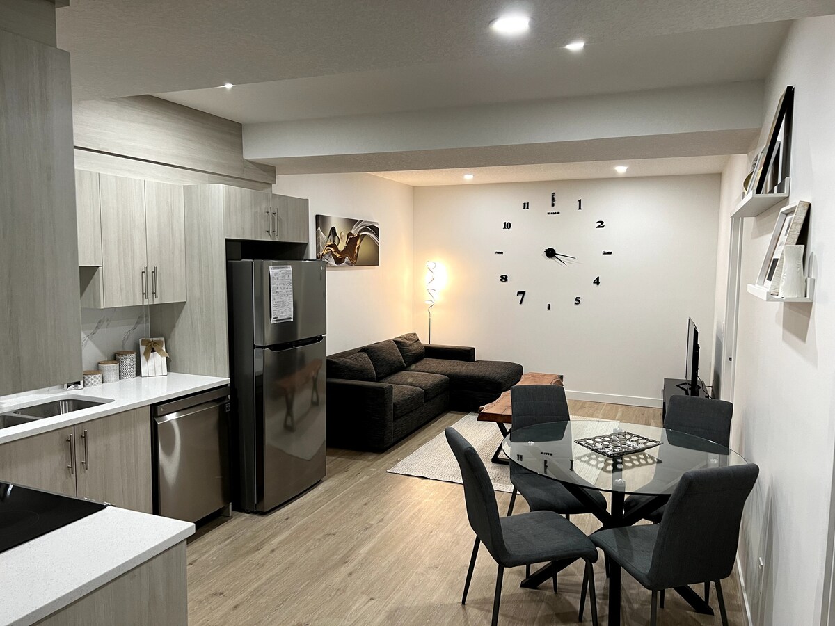 Disfruta de una suite de un dormitorio recién construida y luminosa con vistas serenas al estanque, ubicada en una tranquila calle sin salida para una escapada relajante. La suite ofrece una amplia sala de estar bañada en luz natural, una cocina moderna totalmente equipada, un baño completo y un televisor inteligente con Netflix, perfecto para relajarse después de un día explorando las Rocosas. Este acogedor refugio privado se encuentra en uno de los barrios más deseables de Calgary, con fácil acceso a Stoney Trail, Crowchild Trail y a solo 5 minutos en coche de LRT.