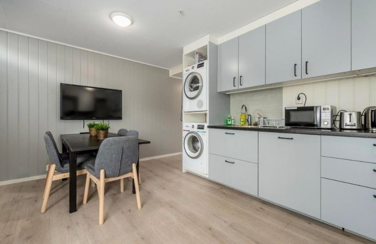 Disfruta de una estancia tranquila en Tromsø a solo 15 minutos a pie del centro de la ciudad, con paradas de autobús justo afuera. Nuestros luminosos apartamentos tipo estudio cuentan con baños privados, cocinas totalmente equipadas y camas acogedoras, perfectas para parejas o viajeros solitarios. A los huéspedes les encanta la ubicación tranquila, los pisos cálidos y el acceso sin restricción de horario. Nota: el desayuno y la limpieza diaria no están incluidos, por lo que este es tu propio hogar privado lejos de casa.