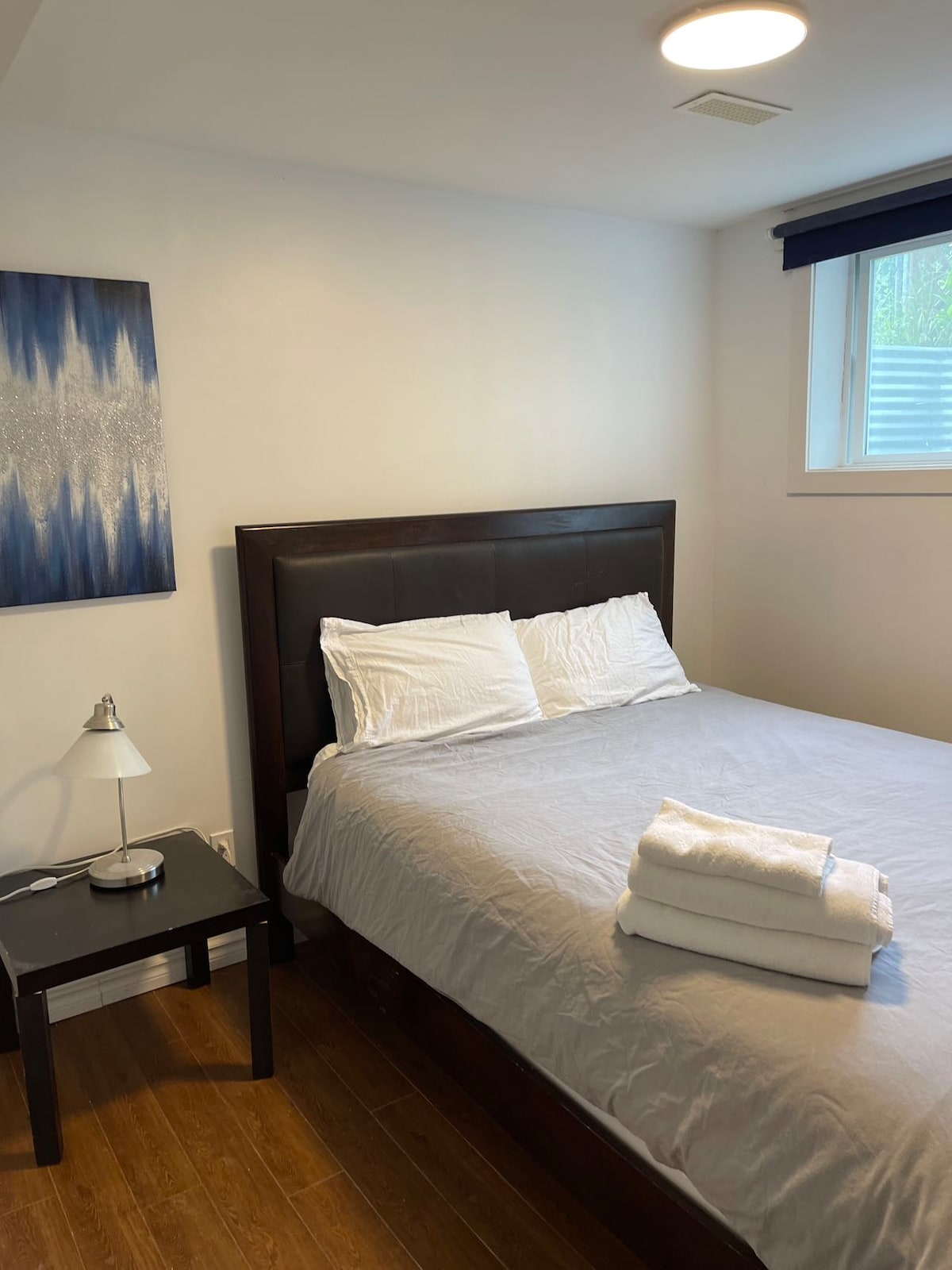Apartamento luminoso y espacioso en el nivel inferior. Este piso tiene una elegante cocina que incluye encimeras de piedra y todos los elementos esenciales que necesitarás para cocinar. El dormitorio cuenta con una cama tamaño queen. La sala de estar separada es perfecta para noches de cine y relajarse. Hay una lavandería compartida disponible y el patio trasero es para tu uso exclusivo. A 10 minutos en auto del aeropuerto y del centro de la ciudad y en una comunidad residencial, todo está cerca . Hay estacionamiento incluido y hay transporte público cerca.
