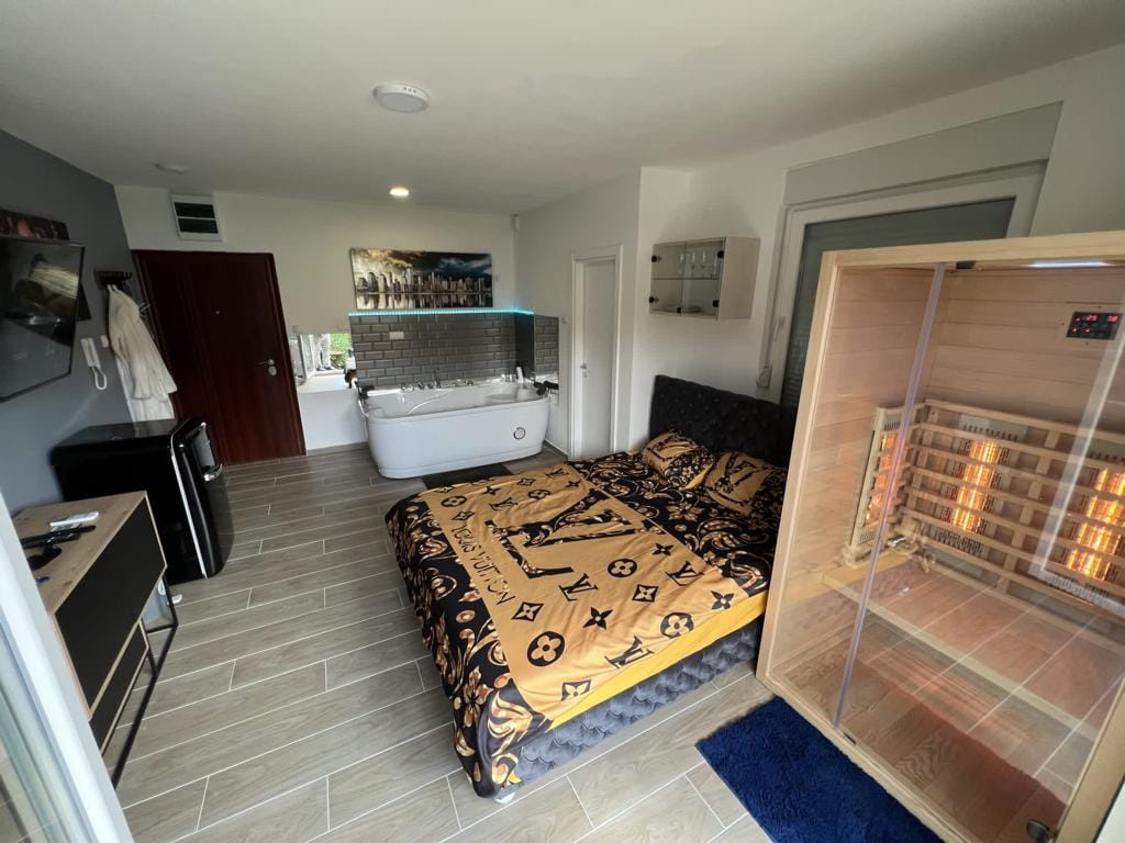 Moderno apartamento totalmente renovado con jacuzzi, con excelente ubicación en el centro de Novi Sad, a solo 10 minutos a pie de la catedral y de la mayoría de las zonas turísticas/populares. Este es un apartamento de 62 metros cuadrados totalmente equipado con capacidad para 4 personas, con jacuzzi, dos televisores de pantalla plana con calidad HD y Netflix incluido, diseño moderno único con silla mecedora, gran sofá cama y todas las comodidades que necesitas, incluyendo lavadora y secadora, cocina totalmente equipada, nevera y microondas.