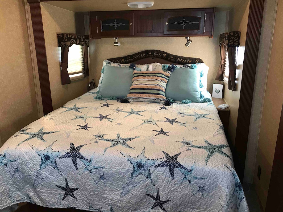 Remolque de viaje ligero de Kodiak tirado fácilmente por la mayoría de los paquetes de remolque o se entrega a tu destino. Capacidad para 6 personas con dormitorio privado queen, 3 armarios, almacenamiento debajo de la cama, estaciones USB, 2 televisores inteligentes, 2 literas de tamaño completo con almacenamiento y rincón para comer. Acampada en la playa no disponible, se requiere reservación en un parque de casas rodantes. Agregar Ons: Entrega = 150 $ hasta 100 millas Tarifa por mascotas = $ 25, sin razas grandes Eliminación de agua gris/negra = $ 30 por vertedero Parrilla = $ 30 (incluye parrilla, plancha y horno de pizza) Sway Bar/cámara retrovisora = $ 50