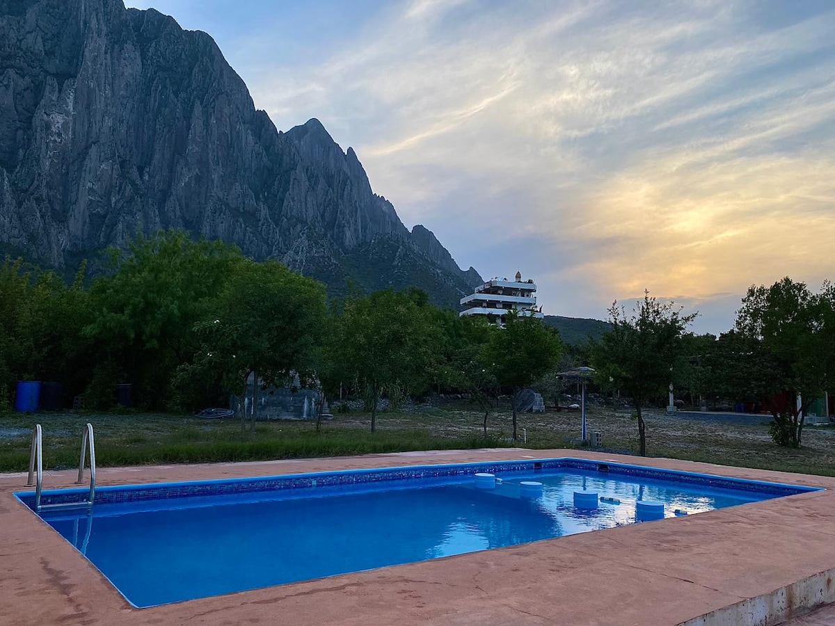 Un encantador oasis de tranquilidad rodeado de naturaleza, a solo treinta minutos de Monterrey. Acogedora y pensada para regalarte momentos de paz, diversión y descanso. Perfecta para parejas, familias o grupos de hasta 8 personas. Con 🏊♂️ alberca 🪵 asador🌙 hamaca ✨ Vive la experiencia del campo con todas las comodidades que mereces. La mejor decisión 🌿¡Reserva hoy!