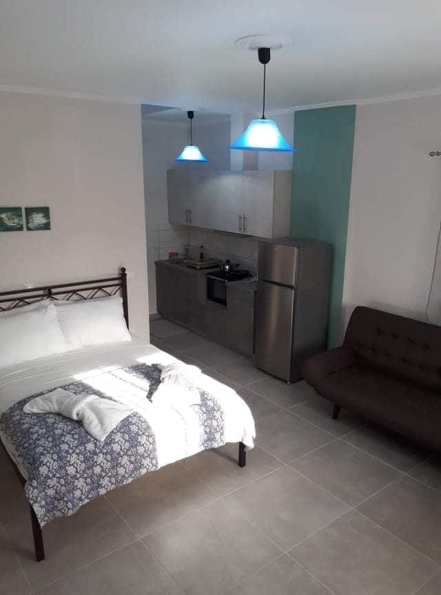 Nuestro edificio está en una calle tranquila a solo 50 metros del centro de Nidri y a 100 metros del mar, por lo que cualquier lugar que quieras visitar (bares, restaurantes, playa, etc.) está a la vuelta de la esquina. Los apartamentos están en la planta baja de nuestra casa, así que no hay escaleras para ti. Cada departamento tiene su propia cocina y baño. También incluye conexión Wi-Fi gratuita y aire acondicionado.