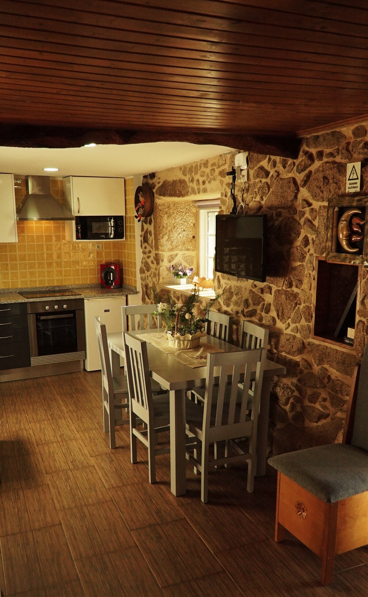 Preciosa casa de piedra reformada, situada entre el mar y el monte. Ideal para quien quiere disfrutar de la tranquilidad del rural gallego, paseando por sus bosques encantados o por las mejores playas de las Rias Baixas . Dispone de 4 dormitorios, cada uno con su propio baño, un salon /comedor grande y acogedor con chimenea, y una biblioteca y espacio de juego en la galeria. Cocina completamente equipada con microondas, cafetera Nespresso, lavavajillas. Hide