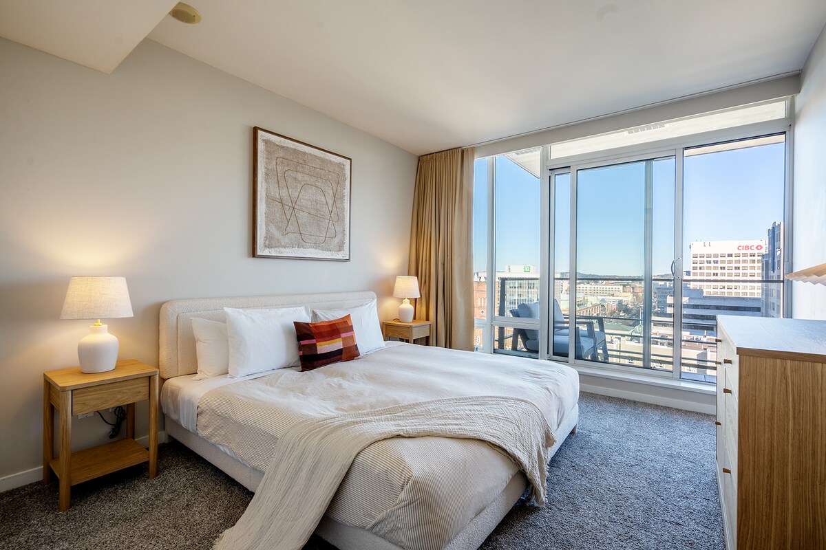 Te damos la bienvenida a Market Square BnB, organizado por Foster. Esta propiedad orientada al oeste está en el corazón del centro de Victoria, ofreciendo lo mejor en comodidad, estilo y ubicación. - Estacionamiento subterráneo seguro gratuito. - Gimnasio - Lavadora y secadora. - Lavavajillas - Baños de sal en la sala. - Netflix. - Cocina totalmente equipada. - Vistas impresionantes a la ciudad - Balcón privado. - Televisión por cable en cada habitación. - Pisos de baño con calefacción. - Techos de 9' - Arte local Licencia comercial del Ayuntamiento de Victoria n .º00048739