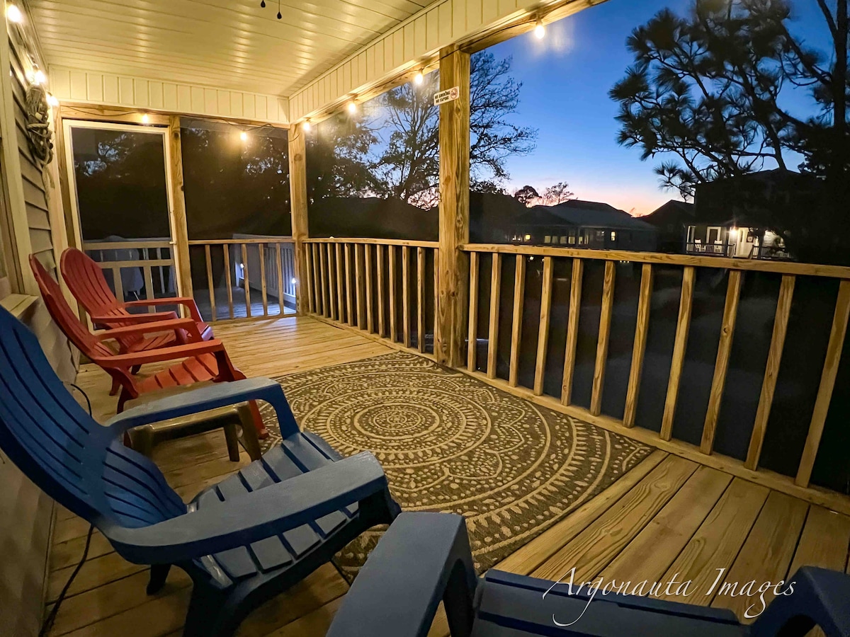 ¡Casa de playa "Just Enough"! Porche delantero con mosquitero