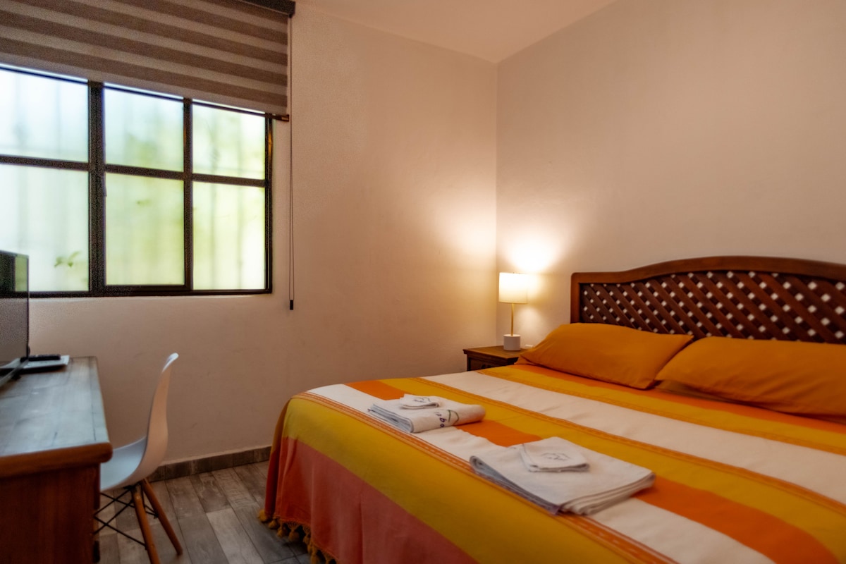 Disfruta de la sencillez de este alojamiento tranquilo y céntrico. Cuenta con entrada independiente, es especial para explorar el centro histórico caminando, Enmedio de todo lo que no te puedes perder de la ciudad de Oaxaca. Cuenta con frigobar, horno de microondas y cafetera. Por estar en el centro histórico, los fines de semana puede escucharse a lo lejos ruido de los eventos de la ciudad, si eres muy sensible al ruido tal vez no sea la mejor opción para ti.