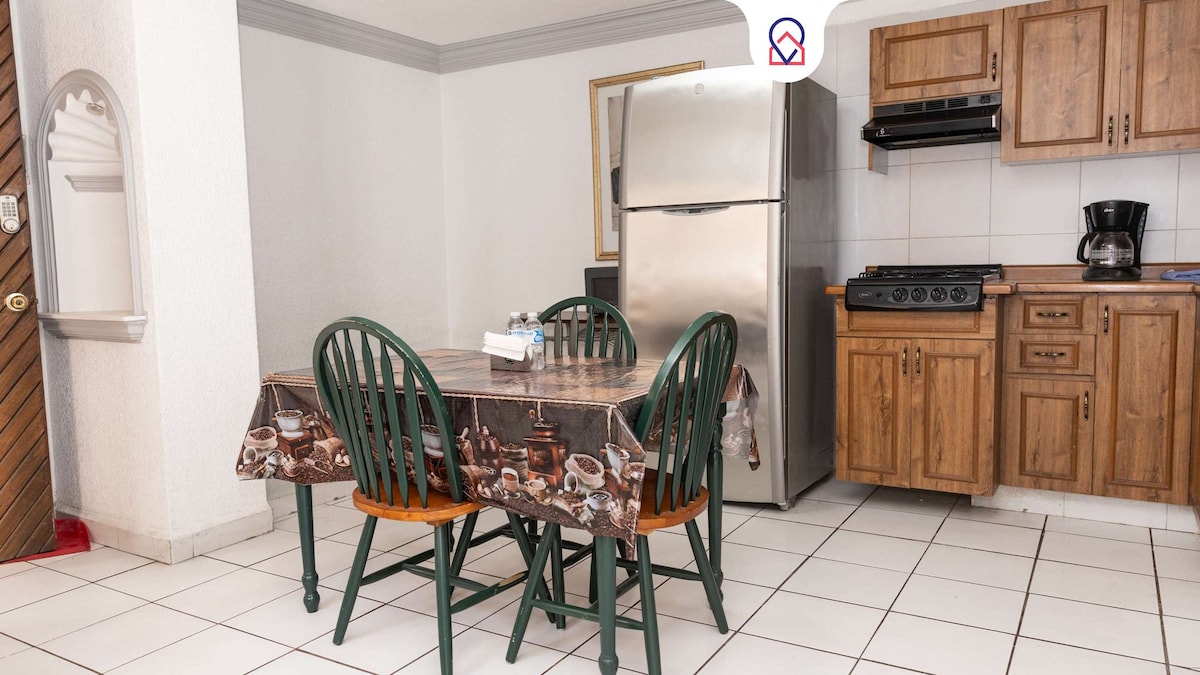Genial y fresco apartamento en primer piso con cama king size, baño con agua caliente, A/C, espacio para trabajar y una cocina rústica privada y open-air totalmente equipada (refrigerador, cafetera, licuadora y más) en una terraza con hamaca. Súper bonito y cómodo, en el corazón de Puerto Escondido🌴 Conexión a internet de fibra óptica (mínimo 20 Mbps) de Telmex y Starlink. ¡Ideal para trabajar en línea!🛜 En El Jardín contamos con 15 diferentes alojamientos, por si deseas ver otras opciones.