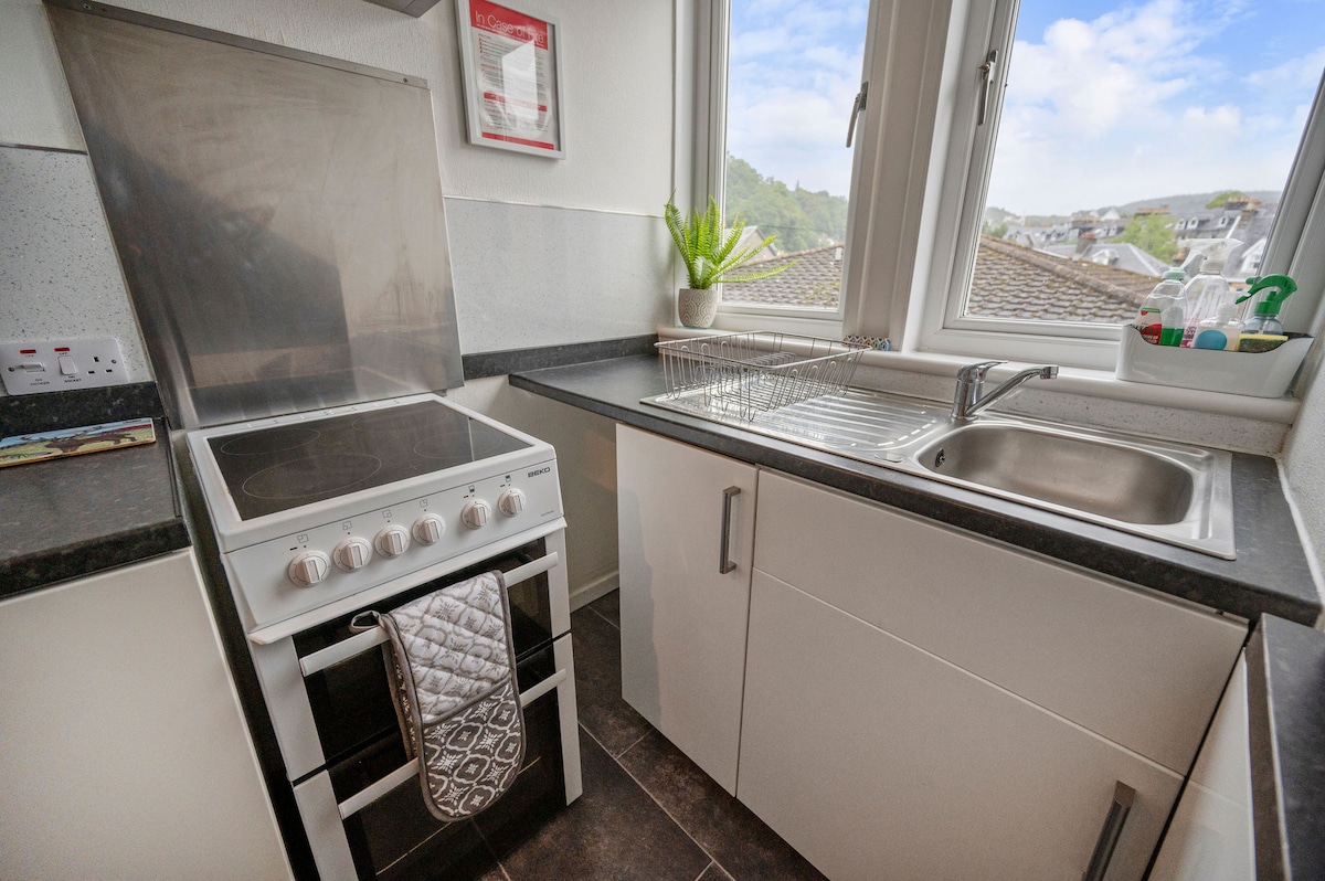 Un hermoso apartamento de 2 dormitorios convenientemente ubicado en el centro de Oban con impresionantes vistas elevadas a Oban y las islas. El balcón ofrece una relajante vista panorámica de la bahía, un lugar perfecto para disfrutar de un café por la mañana o relajarse por la noche. Un apartamento recién reformado con cocina totalmente operativa, 2 dormitorios dobles luminosos y espaciosos y un baño moderno y lujoso que incluye bañera, ducha y toallero eléctrico. Hay conexión wifi gratuita en toda la propiedad.