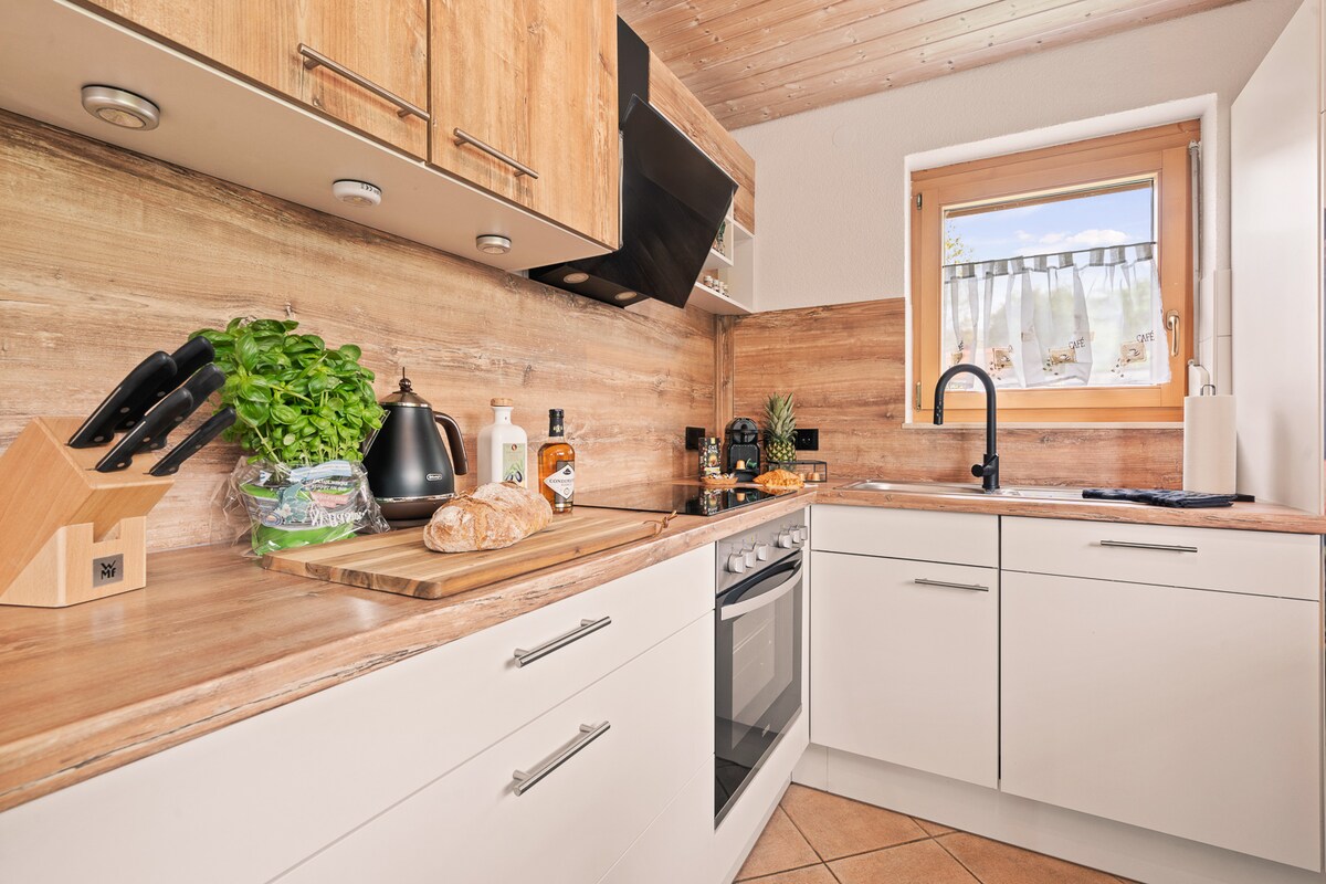 Desde octubre de 2021, ofrecemos un lujoso apartamento tipo loft con equipamiento de alta calidad en nuestra casa de madera de nueva construcción. Desde la fachada de tejas de abeto blanco hasta nuestro parquet de madera auténtica, no falta nada para sentirse bien. Nuestras paredes de madera maciza no solo ofrecen un clima interior óptimo para las personas alérgicas, sino que también dan a nuestros huéspedes la sensación de experimentar la naturaleza en sus propios hogares.
